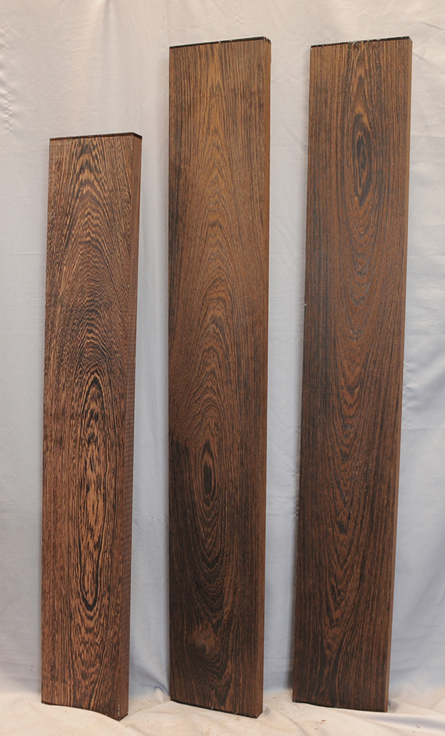 Most Wenge comes from the interior of the Democratic Republic of the Congo (formerly Zaire), and is floated to market on the Congo river. It is fairly hard and heavy with a medium to coarse texture. The heartwood is very dark brown with fine, nearly parallel black veining. Very rich looking when finished.