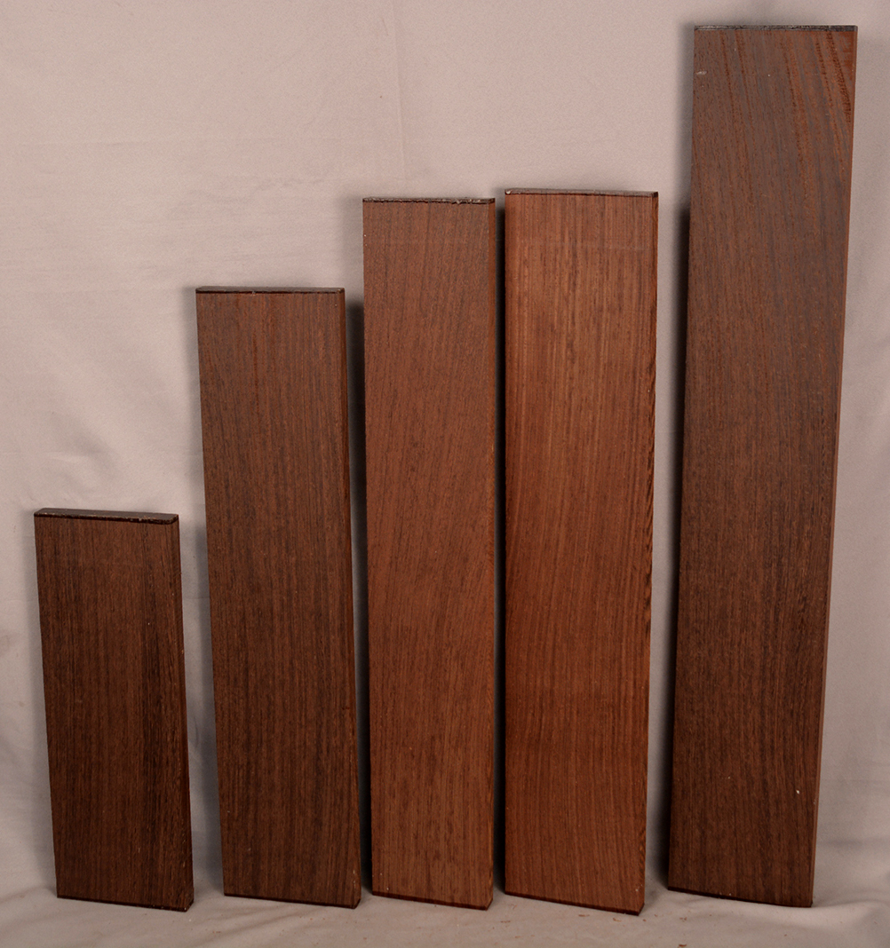 Most Wenge comes from the interior of the Democratic Republic of the Congo (formerly Zaire), and is floated to market on the Congo river. It is fairly hard and heavy with a medium to coarse texture. The heartwood is very dark brown with fine, nearly parallel black veining. Very rich looking when finished.