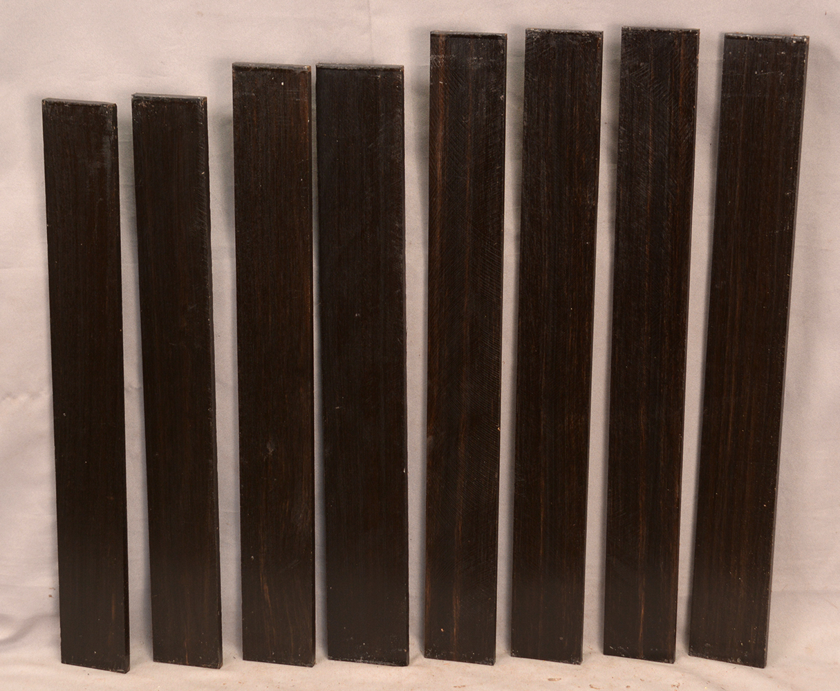 Sometimes called Gabon or Gaboon, this Ebony is sometimes jet black but oftentimes has grayish streaks that mostly disappear when finished or after the made object has been put into service. This Ebony has a marked resistance to checking that is characteristic of some of the Indian and Asian species. It has a wonderful texture and is easily carved, planed, turned, and milled. It is fairly fine-grained and takes a high polish. This Ebony usually originates in either Cameroon or Nigeria and the logs are rough hewn in the forest and oftentimes brought to the nearest road by human porters. With the disappearance of other species of black Ebony this species is fast becoming the Ebony of choice.