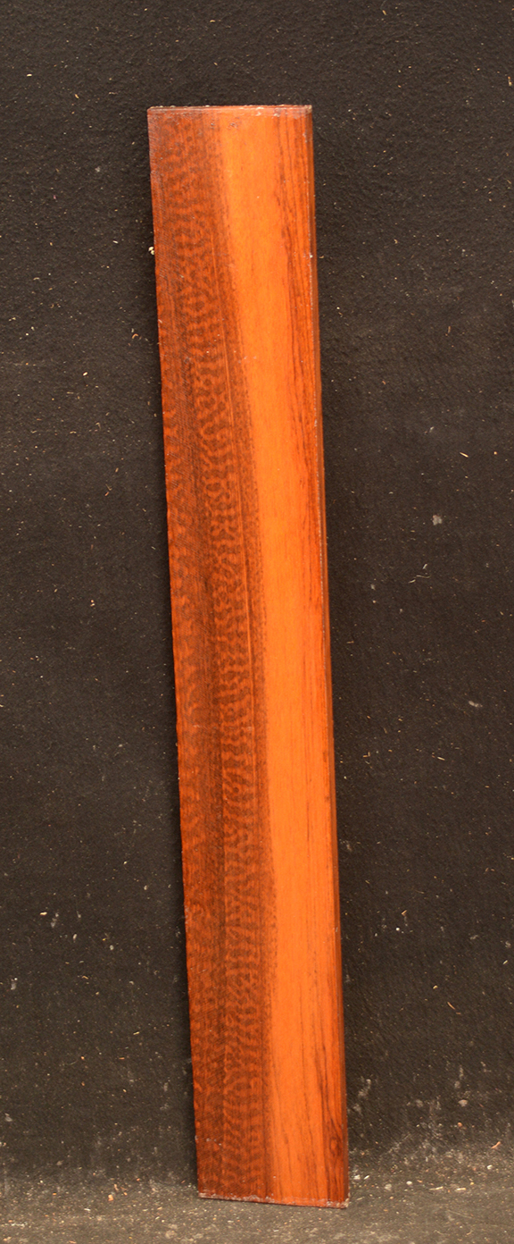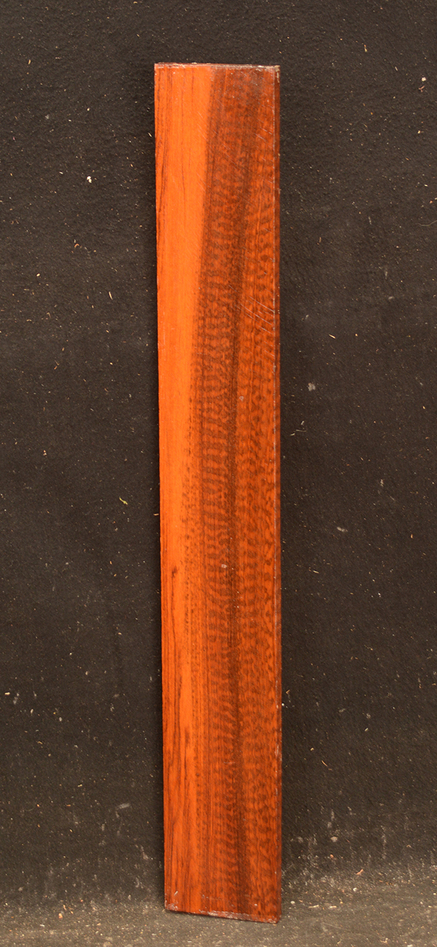 Also called Letterwood and Leopardwood. Color: dark red to reddish brown with irregular black speckles or stripes. Fine textured and highly lustrous. Very hard and heavy, 75-84 lbs/cu ft. Takes a beautiful finish. Very rare and very expensive. Guyana and Surinam.