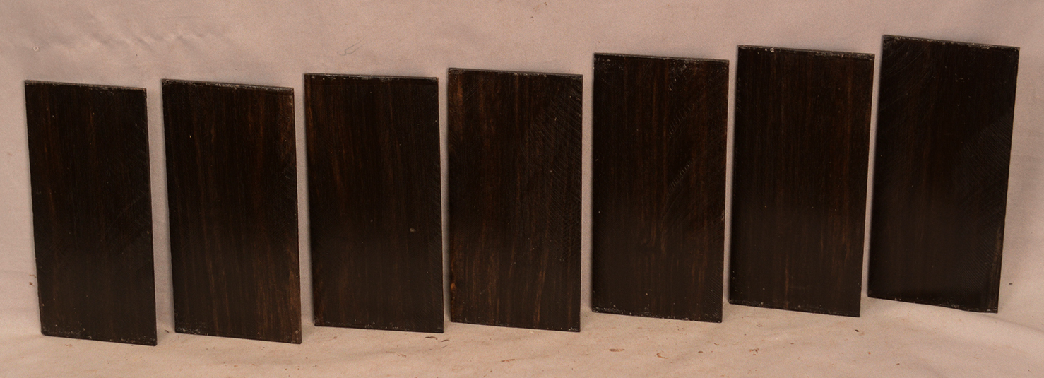 Sometimes called Gabon or Gaboon, this Ebony is sometimes jet black but oftentimes has grayish streaks that mostly disappear when finished or after the made object has been put into service. This Ebony has a marked resistance to checking that is characteristic of some of the Indian and Asian species. It has a wonderful texture and is easily carved, planed, turned, and milled. It is fairly fine-grained and takes a high polish. This Ebony usually originates in either Cameroon or Nigeria and the logs are rough hewn in the forest and oftentimes brought to the nearest road by human porters. With the disappearance of other species of black Ebony this species is fast becoming the Ebony of choice.