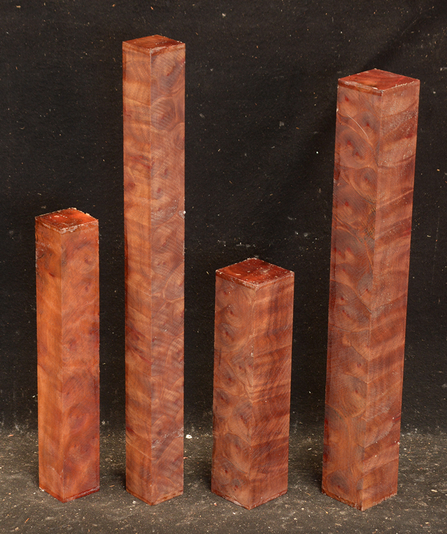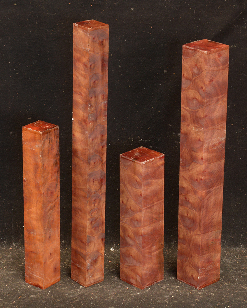 This rare burl is from S.E. Asia and is seldom seen on the world market. It is fine-grained and varies in color from a light reddish-brown to almost scarlet. It is easy to work and has a very pungent, spicy scent. For a burl it is remarkably stable. Green to partially air dried.
