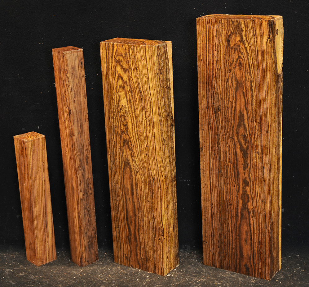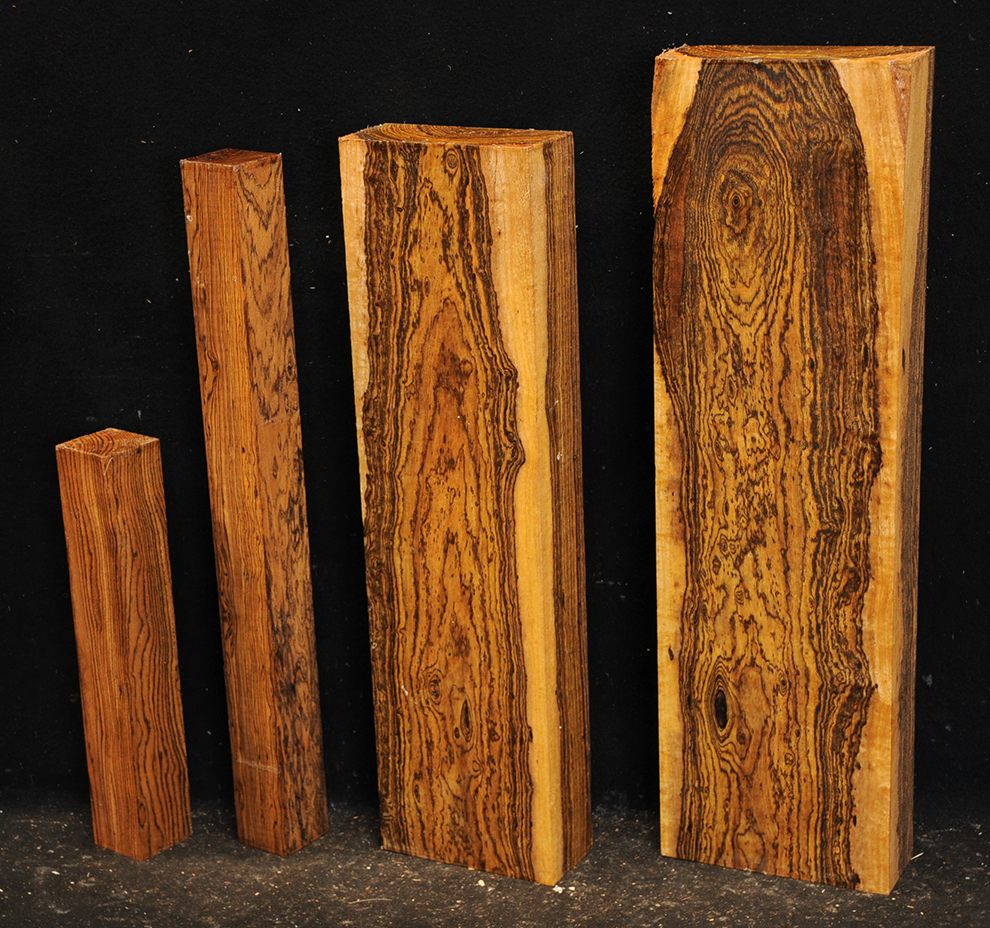 Bocote is an oily wood with a yellowish to dark brown color accented with irregular black stripes and streaks. It has a spicy smell and is hard, heavy and strong. It is easy to work and takes a very nice polish. This beautiful wood is seldom seen in woodworker's shops.
