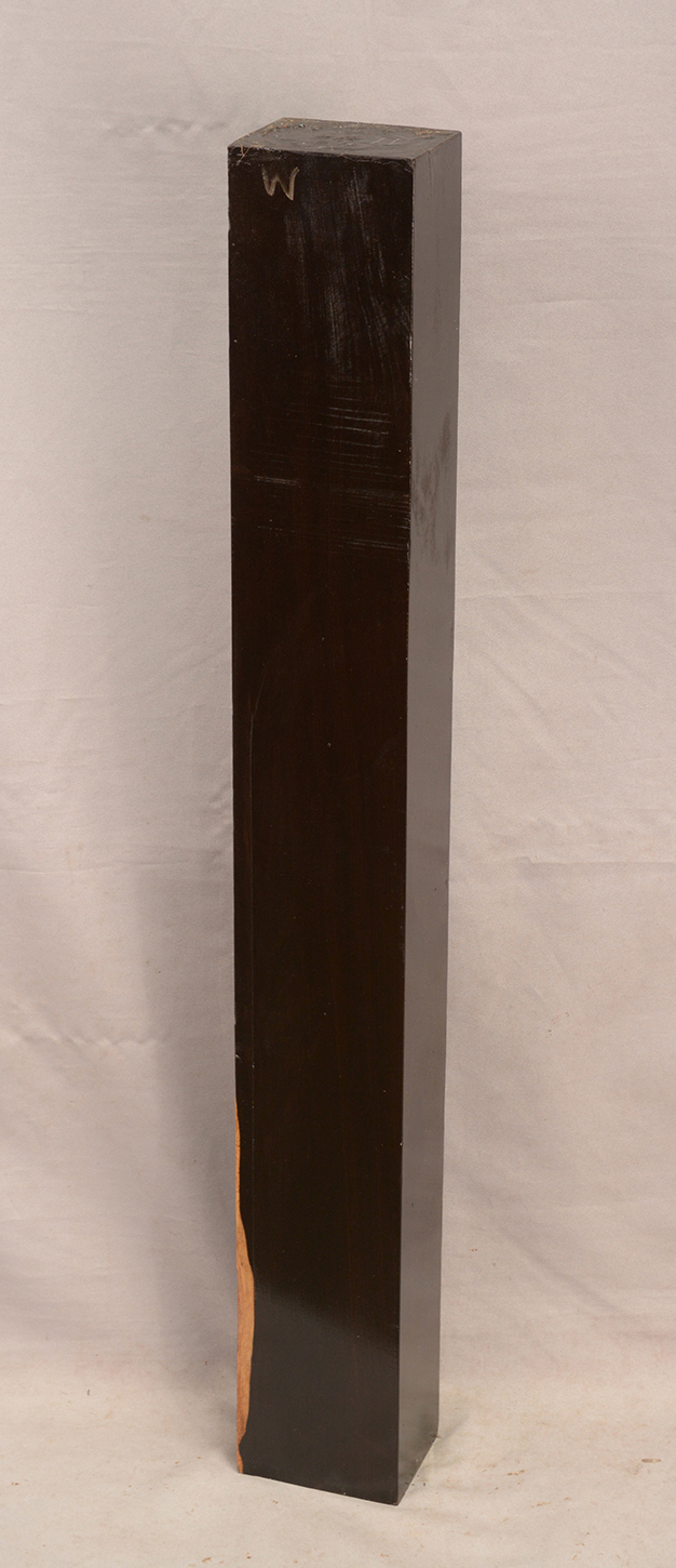 The heartwood is purplish to brownish-black with dark gray streaks giving an overall impression of being black. Lustrous with an attractive inner chatoyance. Very hard, heavy, close-grained, and virtually free from pores. Its stability and lovely tonal qualities make it an excellent instrument wood.