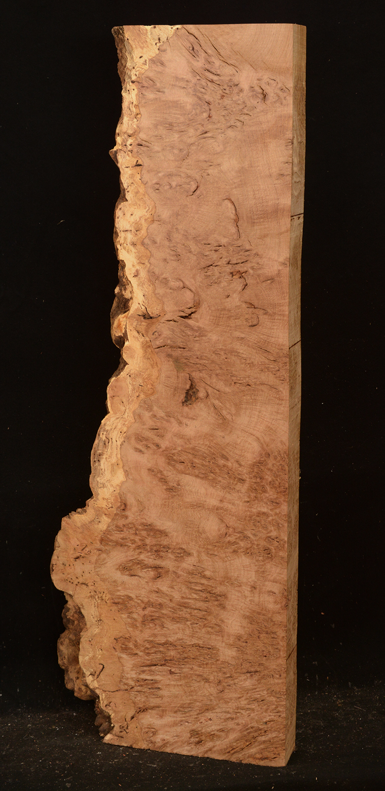These billets/squares are from a log that was completely burled through and through. Typical voids and defects. These have been air-dried in our warehouse for 15 years. On the quartersawn surface it exhibits the beautiful rays or 'silver grain' inherent to this species. This wood takes a beautiful polish and develops a rich, warm patina. Rare and one-of-a-kind.