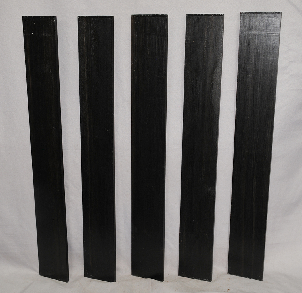 Sometimes called Gabon or Gaboon, this Ebony is sometimes jet black but oftentimes has grayish streaks that mostly disappear when finished or after the made object has been put into service. This Ebony has a marked resistance to checking that is characteristic of some of the Indian and Asian species. It has a wonderful texture and is easily carved, planed, turned, and milled. It is fairly fine-grained and takes a high polish. This Ebony usually originates in either Cameroon or Nigeria and the logs are rough hewn in the forest and oftentimes brought to the nearest road by human porters. With the disappearance of other species of black Ebony this species is fast becoming the Ebony of choice.
