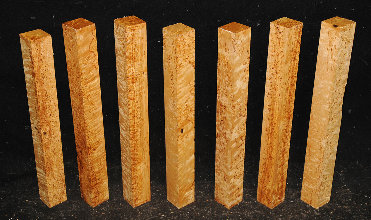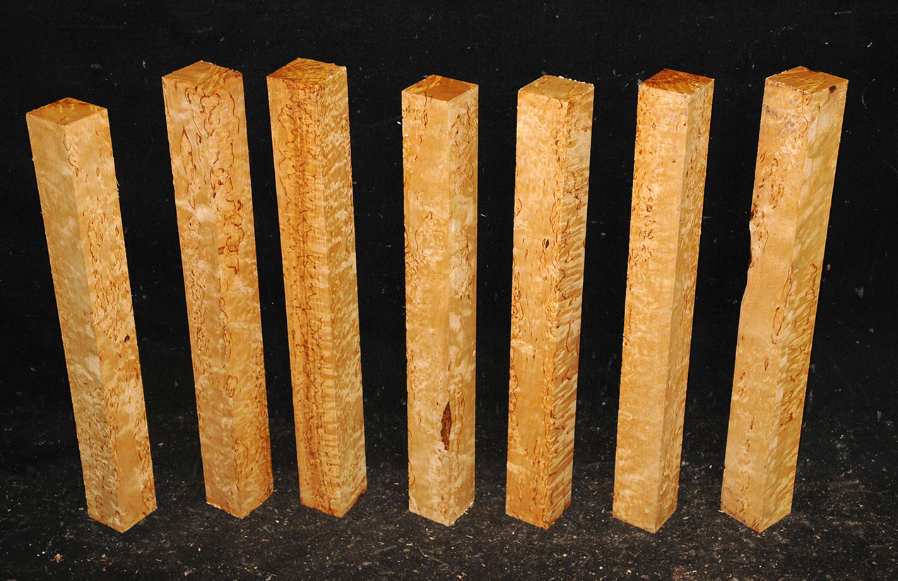 Also called Alpine Burl or Karelian Burl after the Finnish province of Karelia where it is often found. The high figure found in this wood is caused when the tree heals the damage done by an invasive boring beetle. The beetle infestation leaves the trees stunted and sometimes deformed but produces wood with small twists and swirls that highlight the darker, burly figure. Rare.