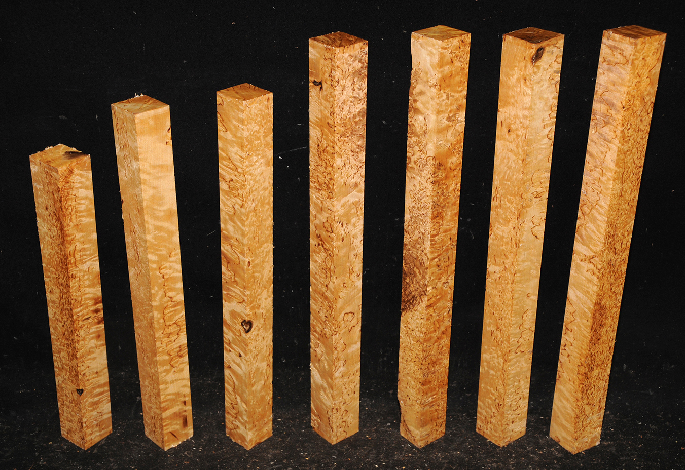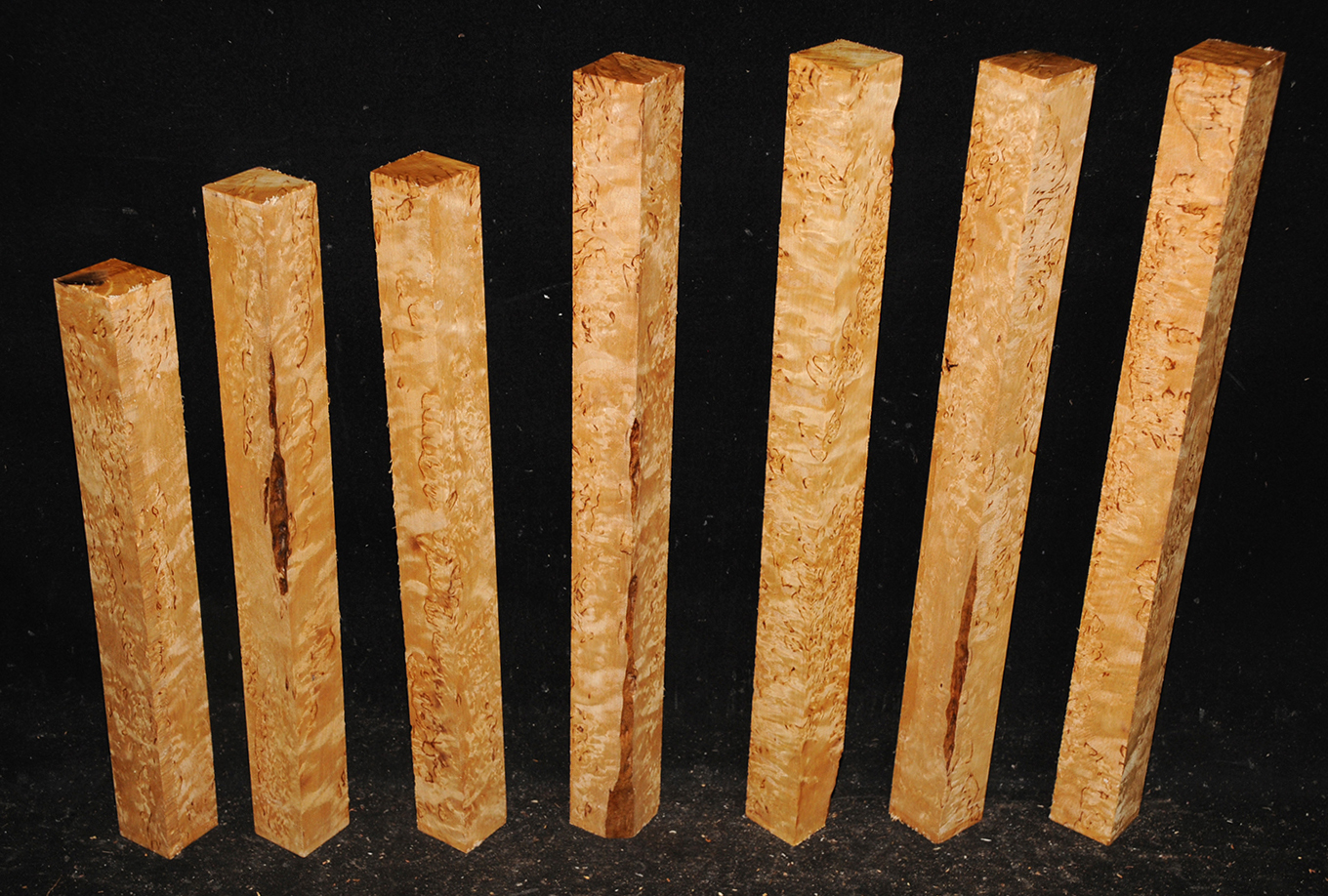 Also called Alpine Burl or Karelian Burl after the Finnish province of Karelia where it is often found. The high figure found in this wood is caused when the tree heals the damage done by an invasive boring beetle. The beetle infestation leaves the trees stunted and sometimes deformed but produces wood with small twists and swirls that highlight the darker, burly figure. Rare.