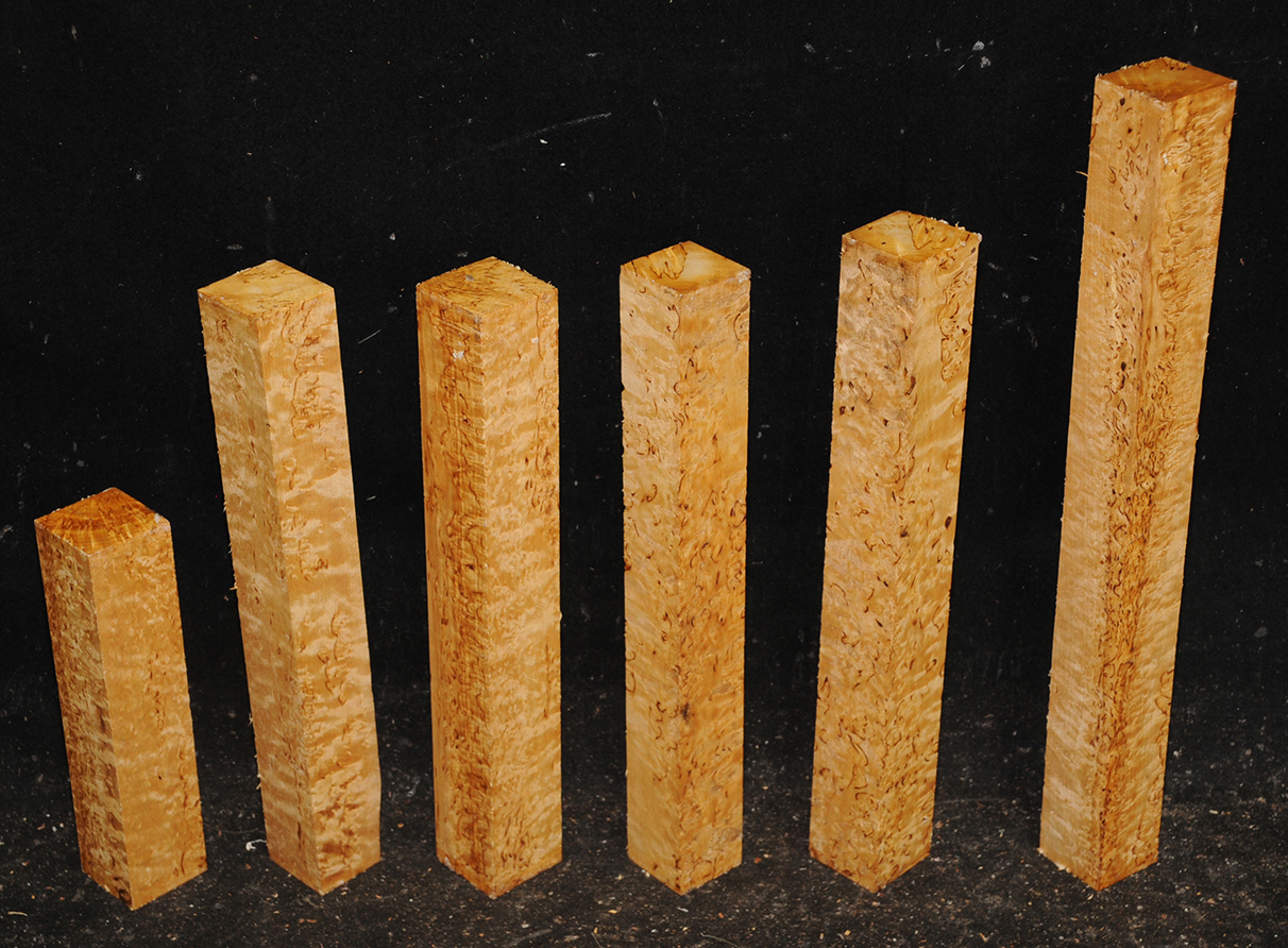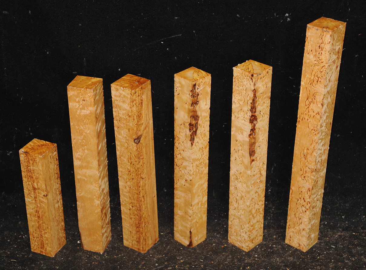 Also called Alpine Burl or Karelian Burl after the Finnish province of Karelia where it is often found. The high figure found in this wood is caused when the tree heals the damage done by an invasive boring beetle. The beetle infestation leaves the trees stunted and sometimes deformed but produces wood with small twists and swirls that highlight the darker, burly figure. Rare.