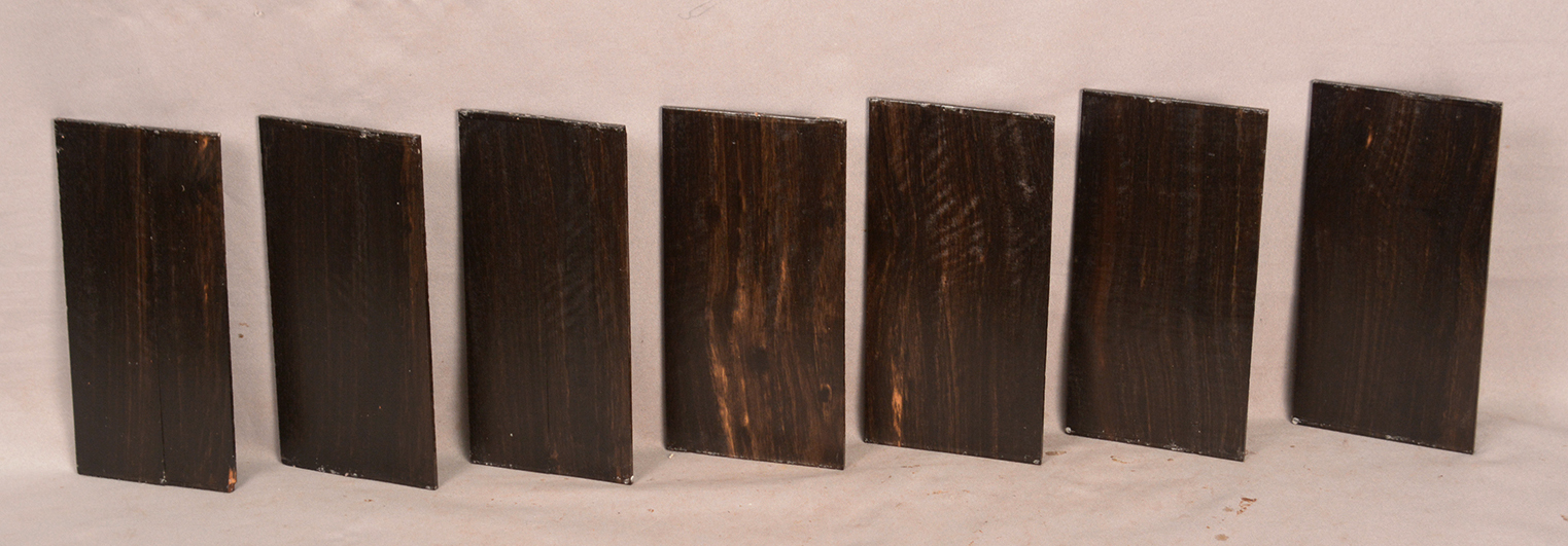 Sometimes called Gabon or Gaboon, this Ebony is sometimes jet black but oftentimes has grayish streaks that mostly disappear when finished or after the made object has been put into service. This Ebony has a marked resistance to checking that is characteristic of some of the Indian and Asian species. It has a wonderful texture and is easily carved, planed, turned, and milled. It is fairly fine-grained and takes a high polish. This Ebony usually originates in either Cameroon or Nigeria and the logs are rough hewn in the forest and oftentimes brought to the nearest road by human porters. With the disappearance of other species of black Ebony this species is fast becoming the Ebony of choice.