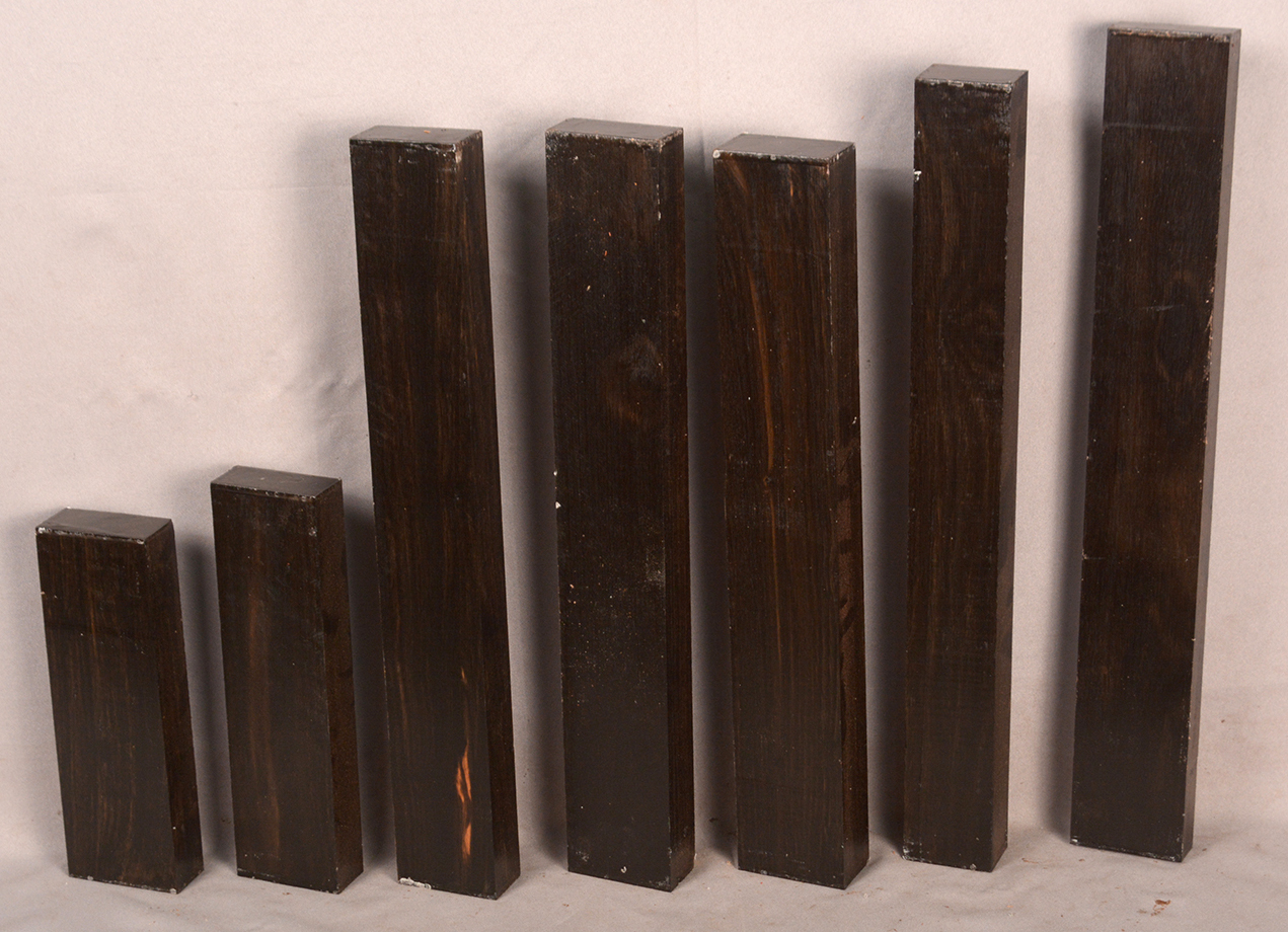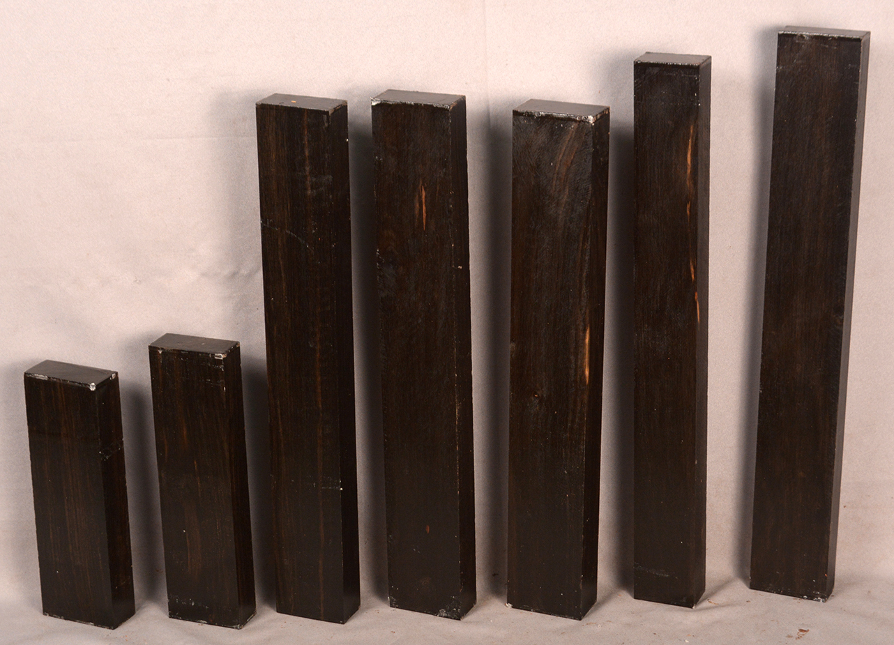 Sometimes called Gabon or Gaboon, this Ebony is sometimes jet black but oftentimes has grayish streaks that mostly disappear when finished or after the made object has been put into service. This Ebony has a marked resistance to checking that is characteristic of some of the Indian and Asian species. It has a wonderful texture and is easily carved, planed, turned, and milled. It is fairly fine-grained and takes a high polish. This Ebony usually originates in either Cameroon or Nigeria and the logs are rough hewn in the forest and oftentimes brought to the nearest road by human porters. With the disappearance of other species of black Ebony this species is fast becoming the Ebony of choice.
