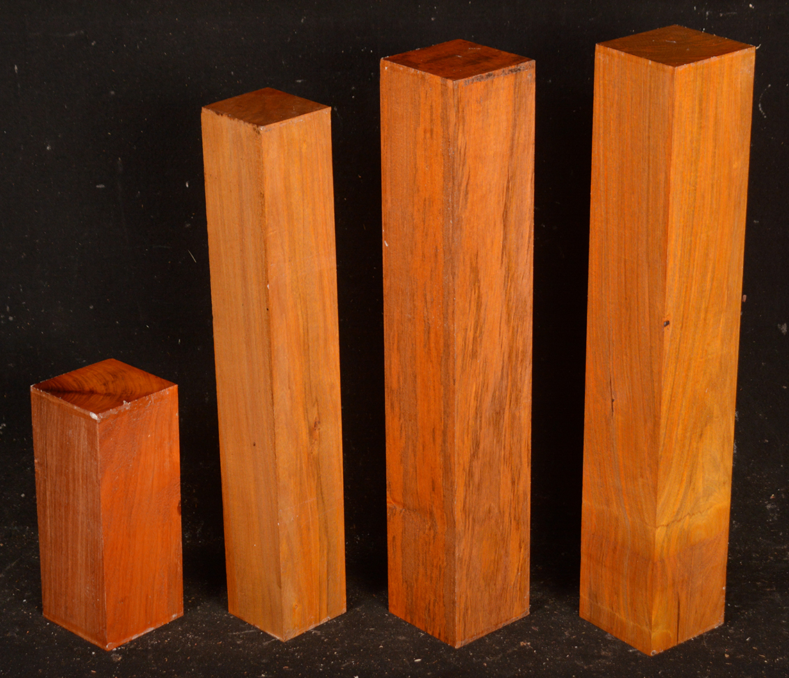 Found in the Yucatan Peninsula in Mexico and related to Pernambuco (Guilandina echinata). It is sought after for house posts in Mexico as it is said to be impervious to termites and other insect pests. It is a lovely light to dark orange color, is fairly hard and heavy, and is capable of taking a very high polish. Rare.