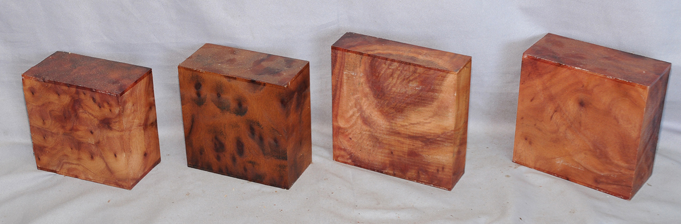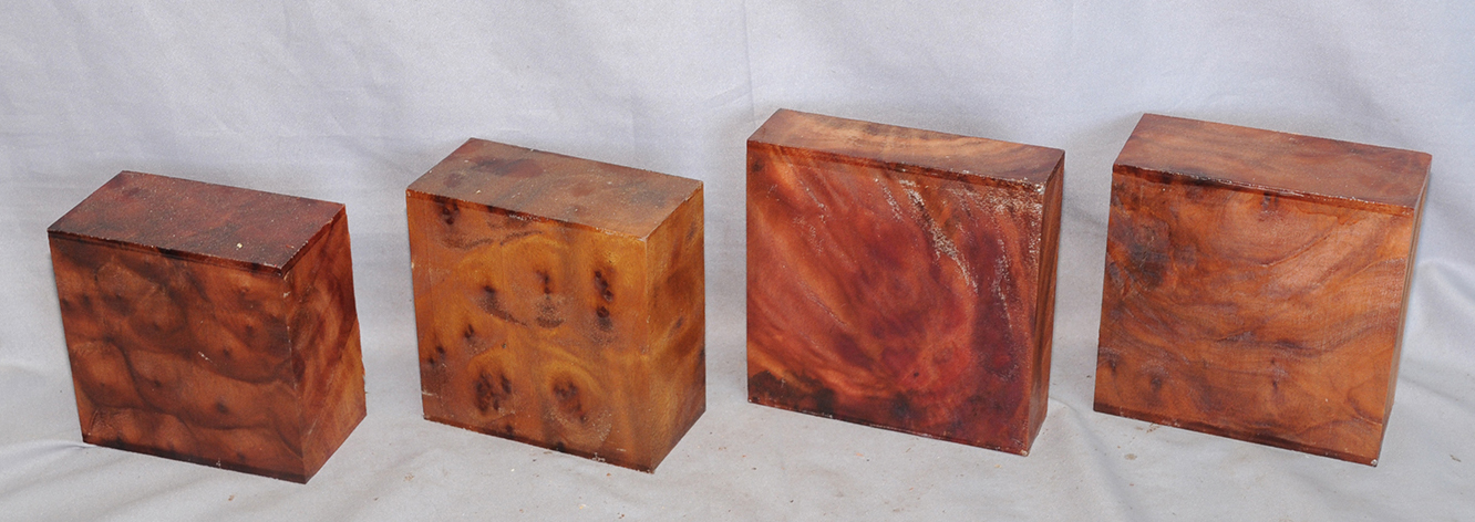 This rare burl is from S.E. Asia and is seldom seen on the world market. It is fine-grained and varies in color from a light reddish-brown to almost scarlet. It is easy to work and has a very pungent, spicy scent. For a burl it is remarkably stable. Green to partially air dried.