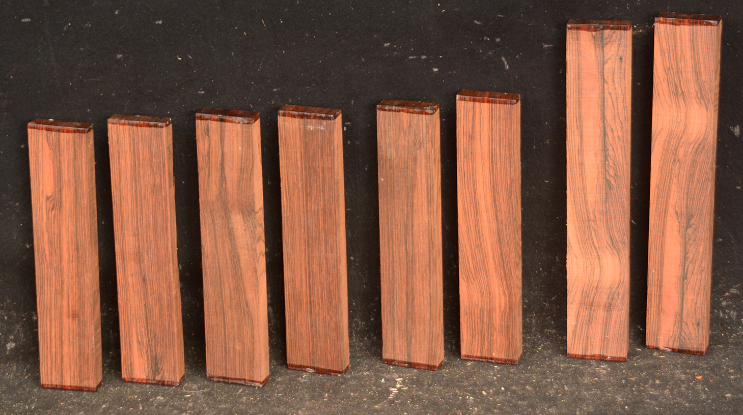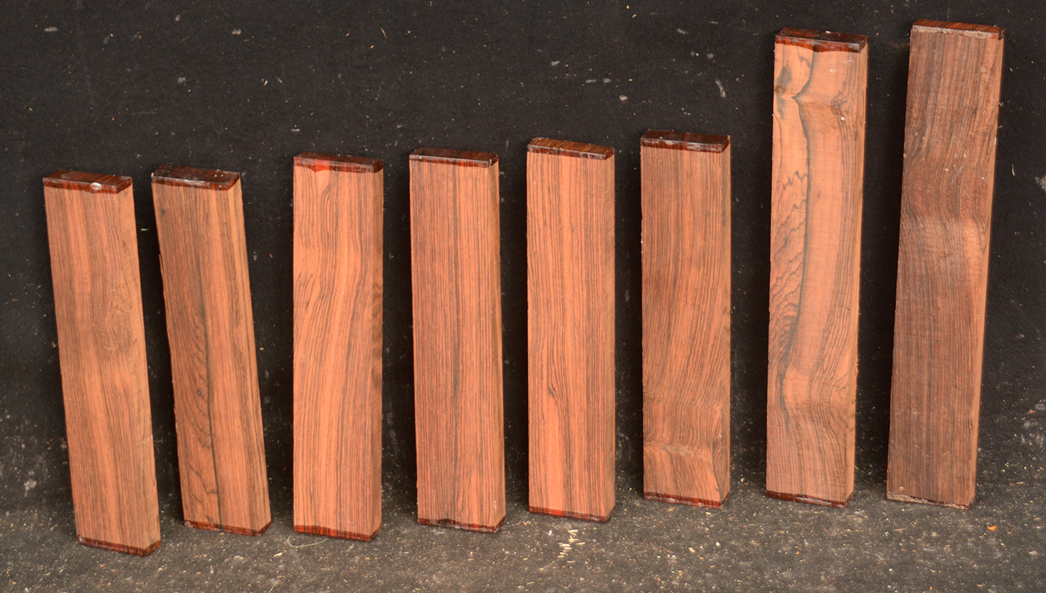 We recently came across a crate of Brazilian Rosewood squares that were bought back in the 1970's. The color runs the gamut from reddish-brown to very dark, almost black and they all have a very musical tone when rapped with a knuckle. Even after all these years the squares have the characteristic Brazilian Rosewood sweet smell. These squares are all in excellent condition with ends trimmed free of defects.