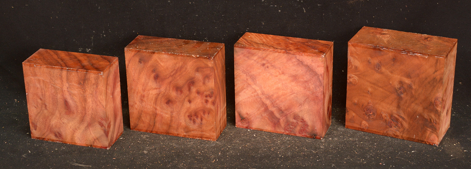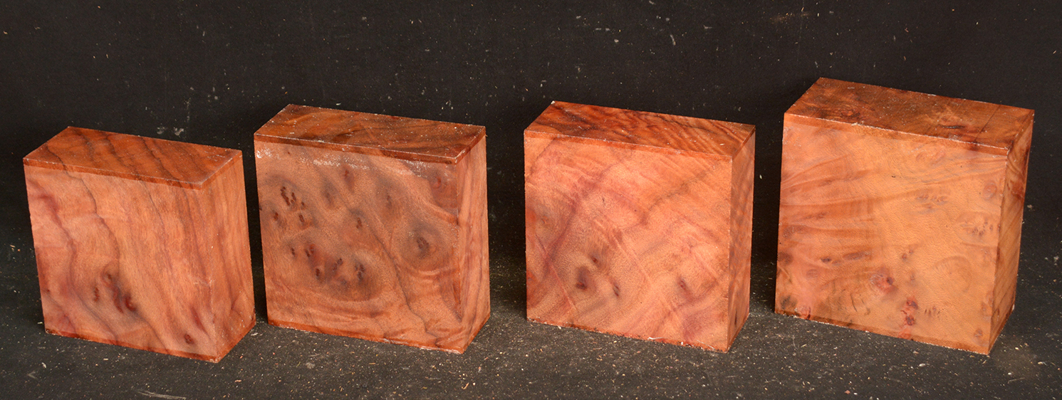 This rare burl is from S.E. Asia and is seldom seen on the world market. It is fine-grained and varies in color from a light reddish-brown to almost scarlet. It is easy to work and has a very pungent, spicy scent. For a burl it is remarkably stable. Green to partially air dried.
