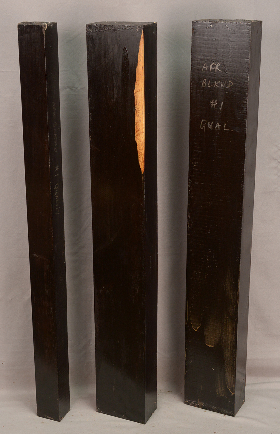 When you are milling this wood, keep watch and if it starts developing small air checks, put a coat of shellac or paste wax on it. These large, mostly clear boards are incredibly rare in African Blackwood so please take pains to prevent degradation.