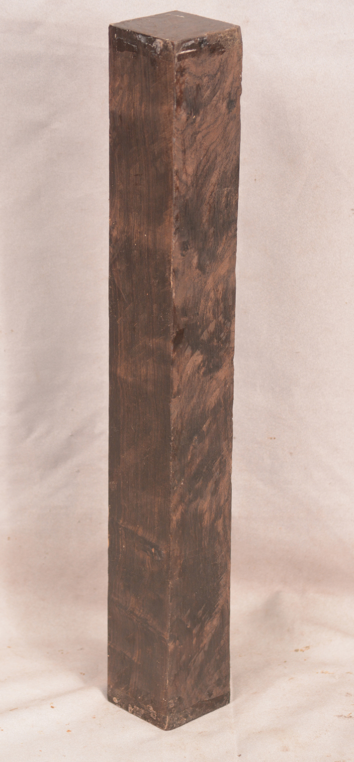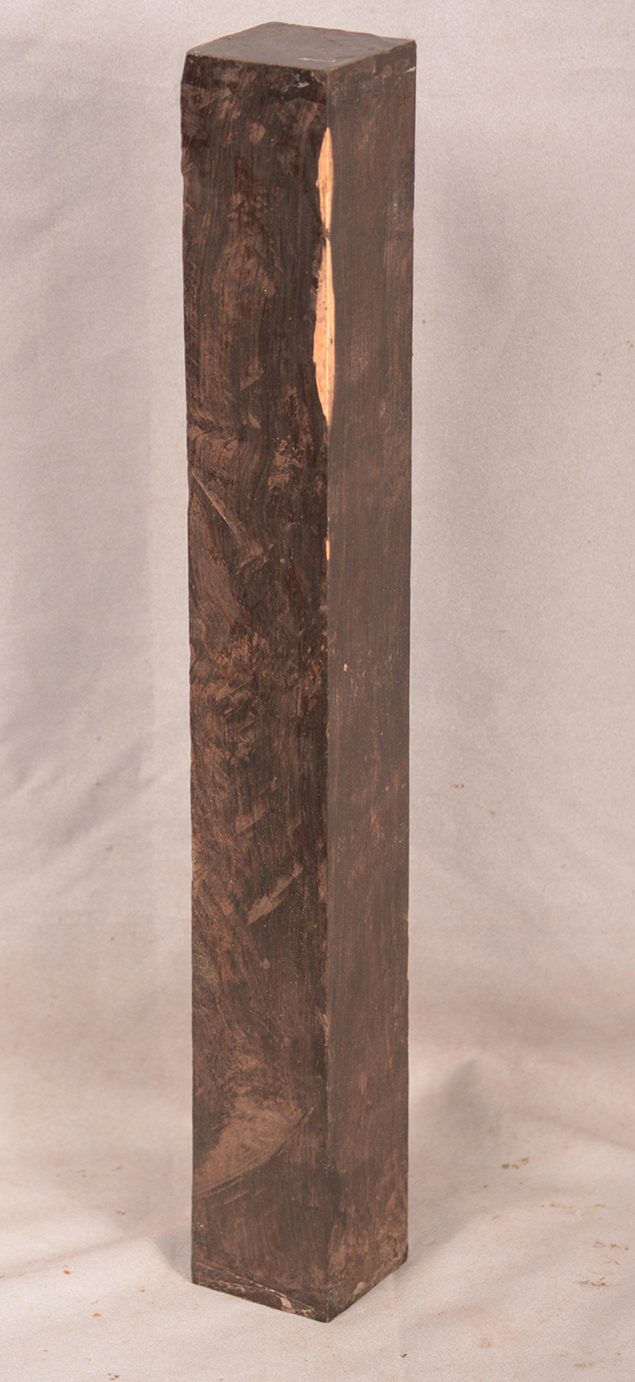The heartwood is purplish to brownish-black with dark gray streaks giving an overall impression of being black. Lustrous with an attractive inner chatoyance. Very hard, heavy, close-grained, and virtually free from pores. Its stability and lovely tonal qualities make it an excellent instrument wood.