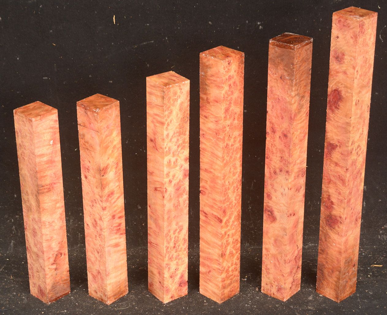 This rare burl is from S.E. Asia and is seldom seen on the world market. It is fine-grained and varies in color from a light reddish-brown to almost scarlet. It is easy to work and has a very pungent, spicy scent. For a burl it is remarkably stable. Green to partially air dried.