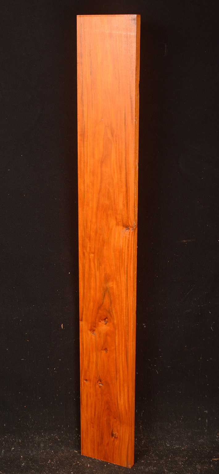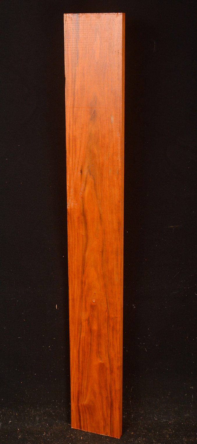 Found in the Yucatan Peninsula in Mexico and related to Pernambuco (Guilandina echinata). It is sought after for house posts in Mexico as it is said to be impervious to termites and other insect pests. It is a lovely light to dark orange color, is fairly hard and heavy, and is capable of taking a very high polish. Rare.