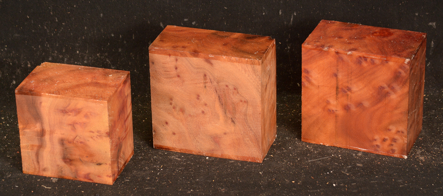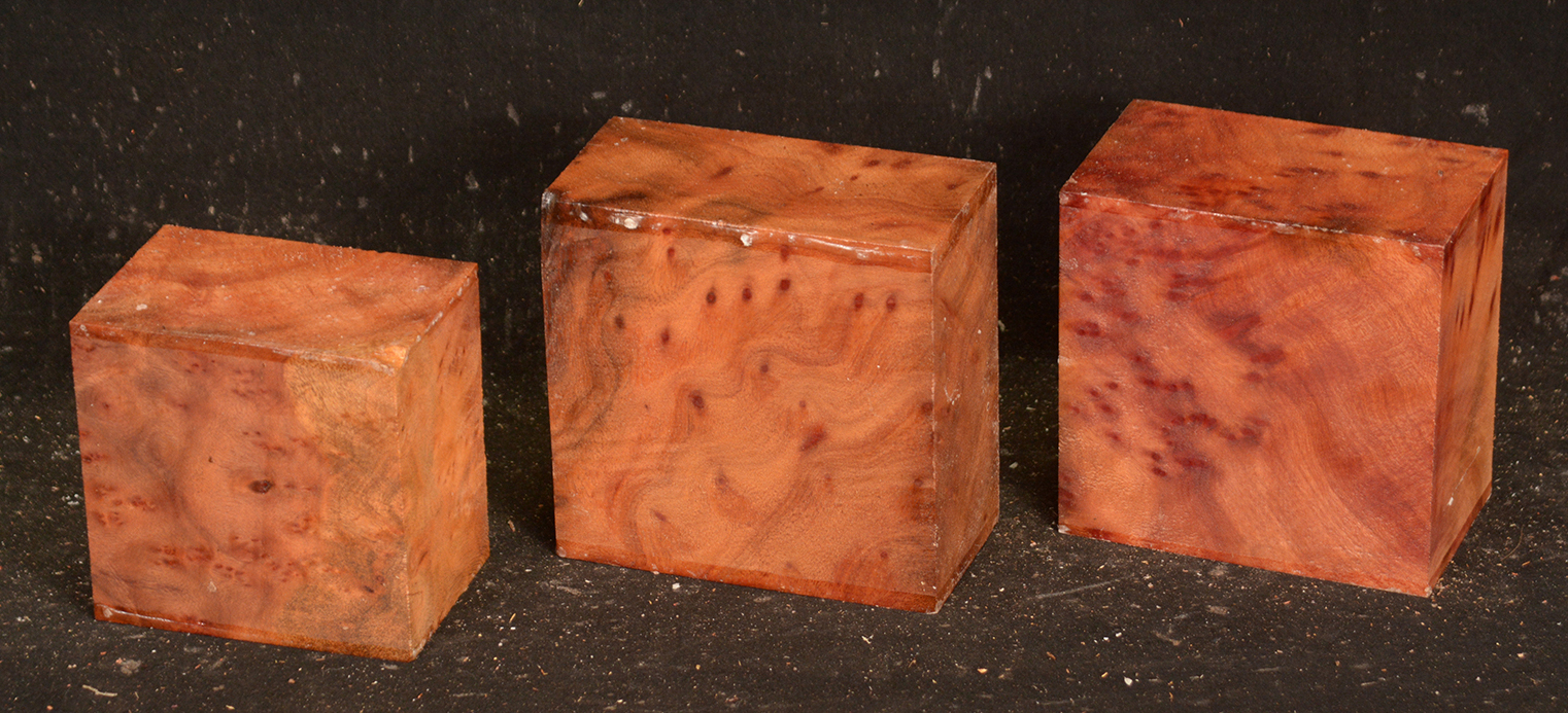 This rare burl is from S.E. Asia and is seldom seen on the world market. It is fine-grained and varies in color from a light reddish-brown to almost scarlet. It is easy to work and has a very pungent, spicy scent. For a burl it is remarkably stable. Green to partially air dried.