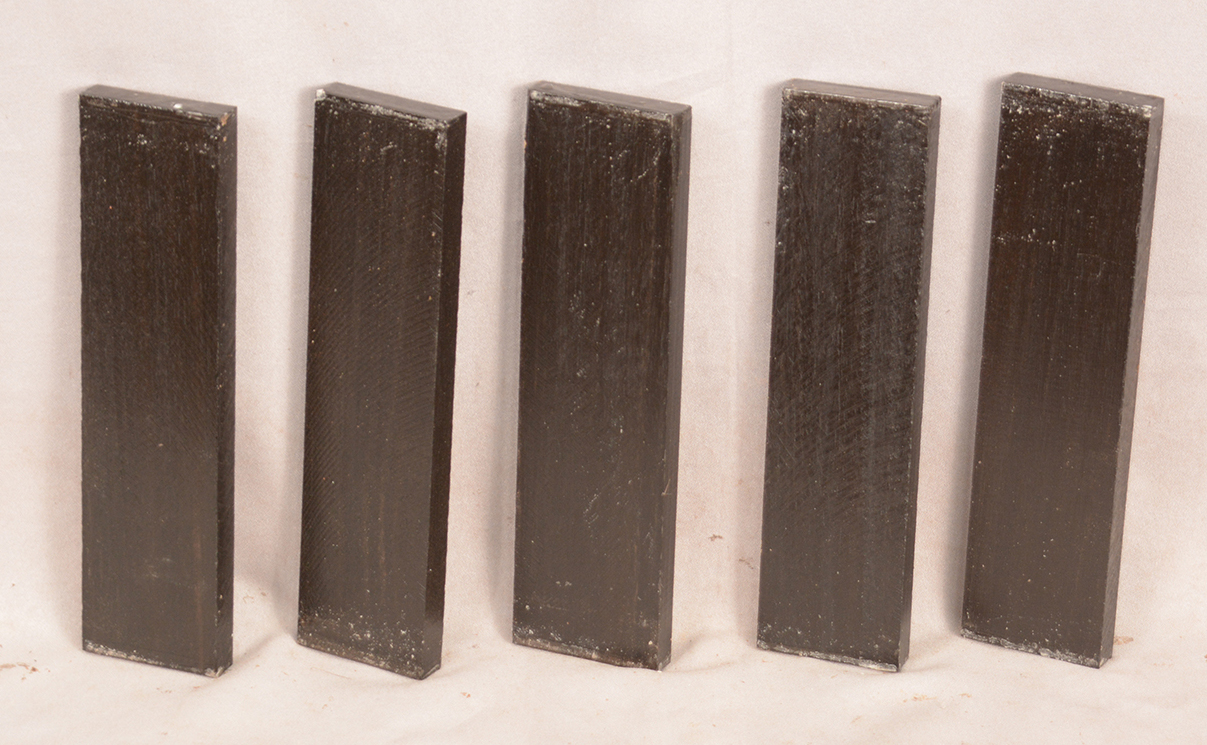 Sometimes called Gabon or Gaboon, this Ebony is sometimes jet black but oftentimes has grayish streaks that mostly disappear when finished or after the made object has been put into service. This Ebony has a marked resistance to checking that is characteristic of some of the Indian and Asian species. It has a wonderful texture and is easily carved, planed, turned, and milled. It is fairly fine-grained and takes a high polish. This Ebony usually originates in either Cameroon or Nigeria and the logs are rough hewn in the forest and oftentimes brought to the nearest road by human porters. With the disappearance of other species of black Ebony this species is fast becoming the Ebony of choice.