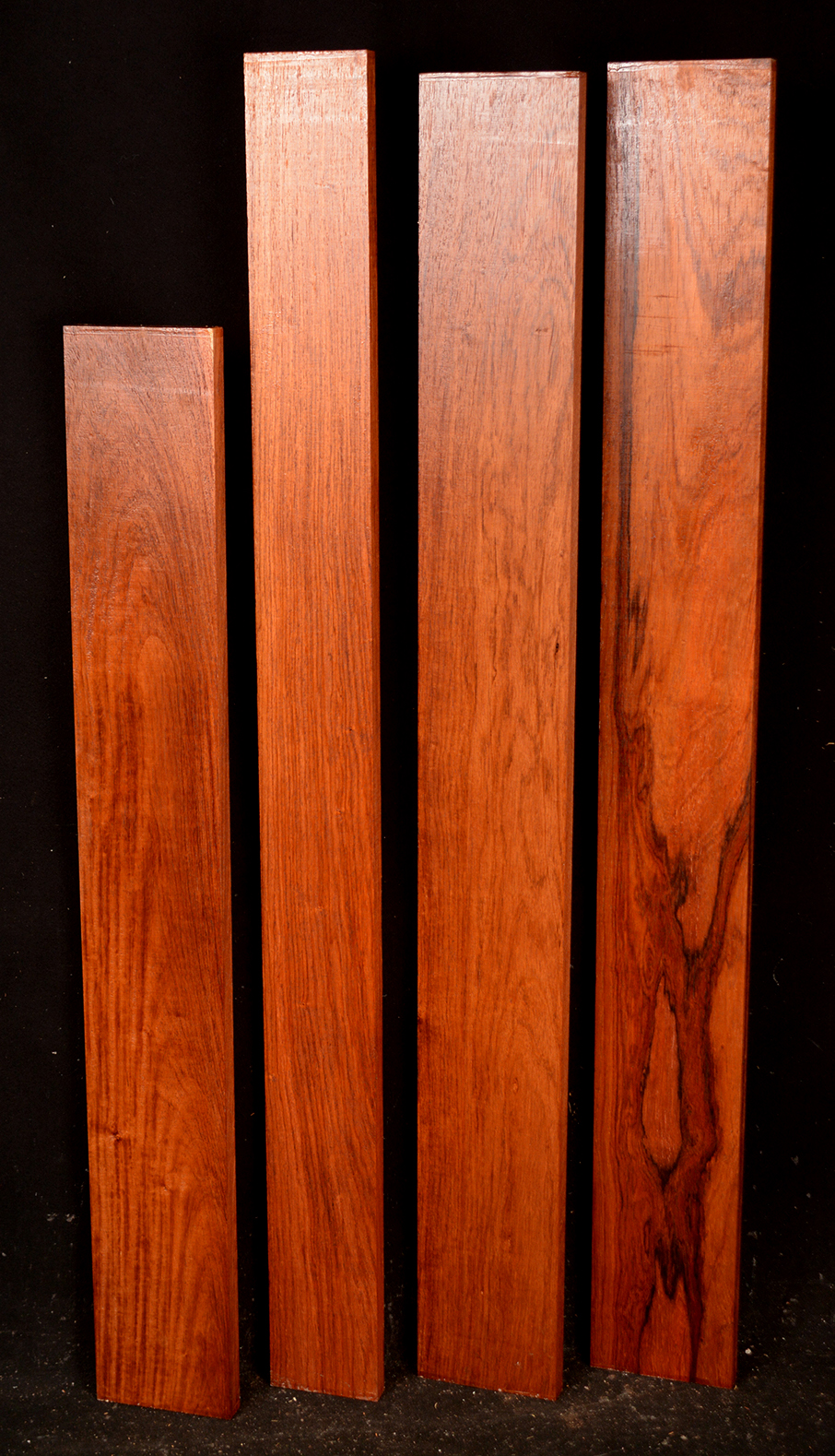 This Rosewood species has a reddish-brown to dark brown colored heartwood contrasting the almost white sapwood. The dust has a sweet odor. It is an excellent furniture/case works/jewelry box wood and even though it has a medium texture it does take a nice polish. We also offer it as a musical instrument wood (see guitar fingerboards and backs & sides elsewhere on the site). It has a very "crisp" tap tone with good sustain.
