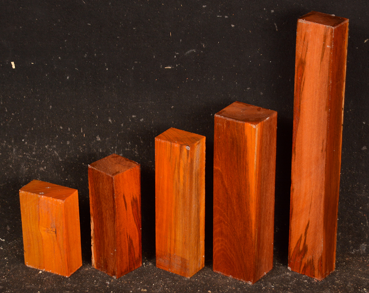 Also called Ibirapitanga and Pau Brazil, this once important dyewood gave origin to the name of Brazil. It is now facing extinction over most of its growth area and is listed by CITES as endangered. The color of the heartwood is yellowish-brown to orange and is fine-grained, hard, and heavy. Rare.