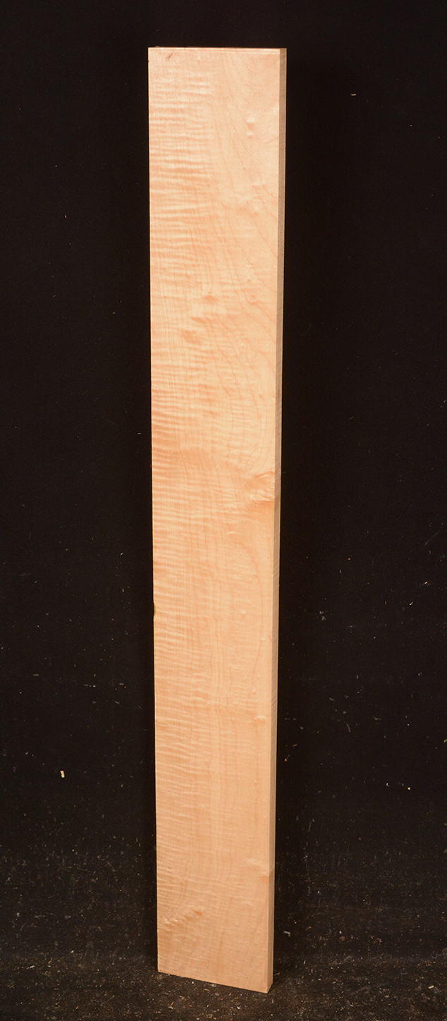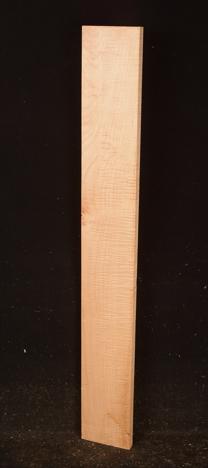 The heartwood is white or cream to light brown or reddish brown. Because of the generally small size of available logs, most sawmills produce flatsawn boards which will show a broken curl on the surface and a fiddleback curl on the quartersawn edge. Hard and heavy, 45 lbs/cu ft. Easy to work and takes a smooth polish. U.S.A.