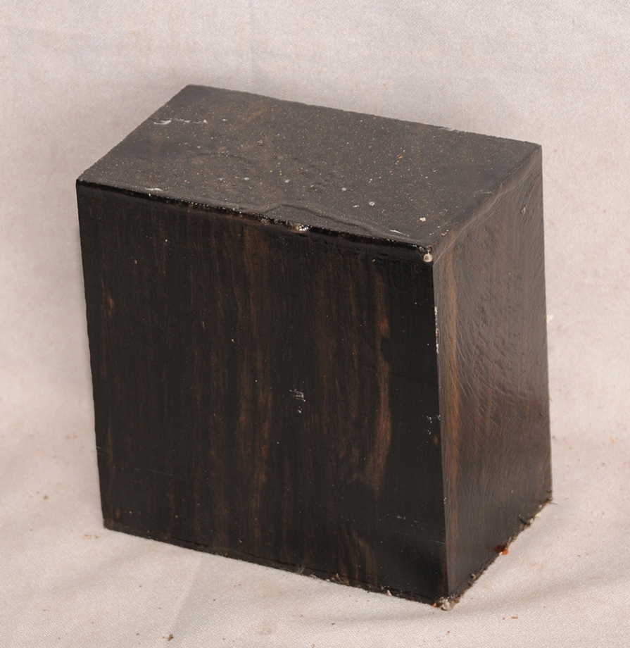 Sometimes called Gabon or Gaboon, this Ebony is sometimes jet black but oftentimes has grayish streaks that mostly disappear when finished or after the made object has been put into service. This Ebony has a marked resistance to checking that is characteristic of some of the Indian and Asian species. It has a wonderful texture and is easily carved, planed, turned, and milled. It is fairly fine-grained and takes a high polish. This Ebony usually originates in either Cameroon or Nigeria and the logs are rough hewn in the forest and oftentimes brought to the nearest road by human porters. With the disappearance of other species of black Ebony this species is fast becoming the Ebony of choice.
