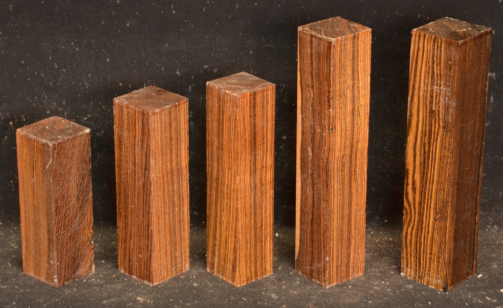 Bocote is an oily wood with a yellowish to dark brown color accented with irregular black stripes and streaks. It has a spicy smell and is hard, heavy and strong. It is easy to work and takes a very nice polish. This beautiful wood is seldom seen in woodworker's shops.