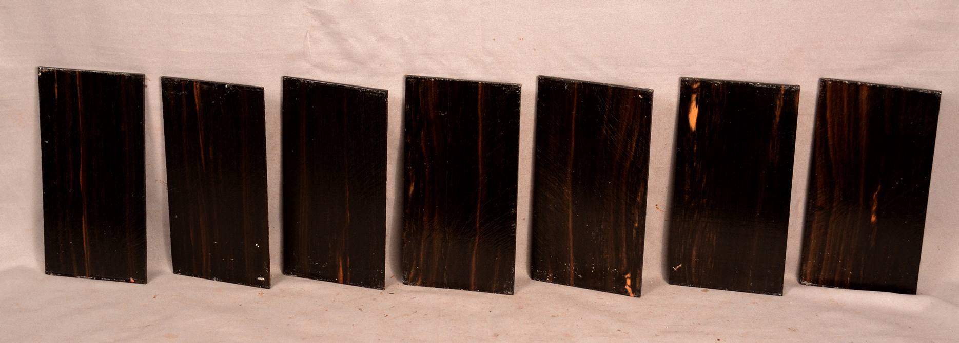 Sometimes called Gabon or Gaboon, this Ebony is sometimes jet black but oftentimes has grayish streaks that mostly disappear when finished or after the made object has been put into service. This Ebony has a marked resistance to checking that is characteristic of some of the Indian and Asian species. It has a wonderful texture and is easily carved, planed, turned, and milled. It is fairly fine-grained and takes a high polish. This Ebony usually originates in either Cameroon or Nigeria and the logs are rough hewn in the forest and oftentimes brought to the nearest road by human porters. With the disappearance of other species of black Ebony this species is fast becoming the Ebony of choice.