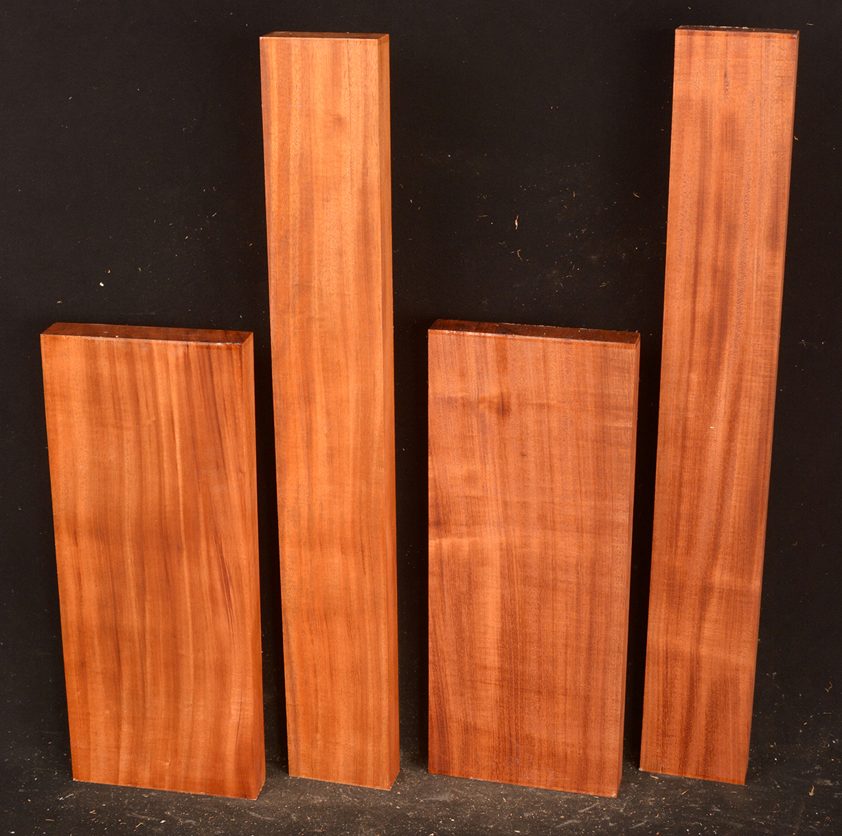 Also called Acajou, Tropical American Mahogany, and Honduras Mahogany. This medium to large tree occurs throughout Central and South America. Related to Cuban Mahogany (Swietenia mahogani) and Pacific Coast Mahogany (Swietenia humilis). It produces one of the classic furniture and cabinetmaking woods. The heartwood varies from a light reddish-brown to a rich, dark red. Generally straight grained and exceptionally stable, it is easy to machine, hand plane, sand and finish. Occasional logs produce several figures, curly, quilted, and the rare plum pudding figure which looks like large drips running down the board. Used in fine furniture and joinery, boat building, and in the guitar industry for acoustic sets and necks.