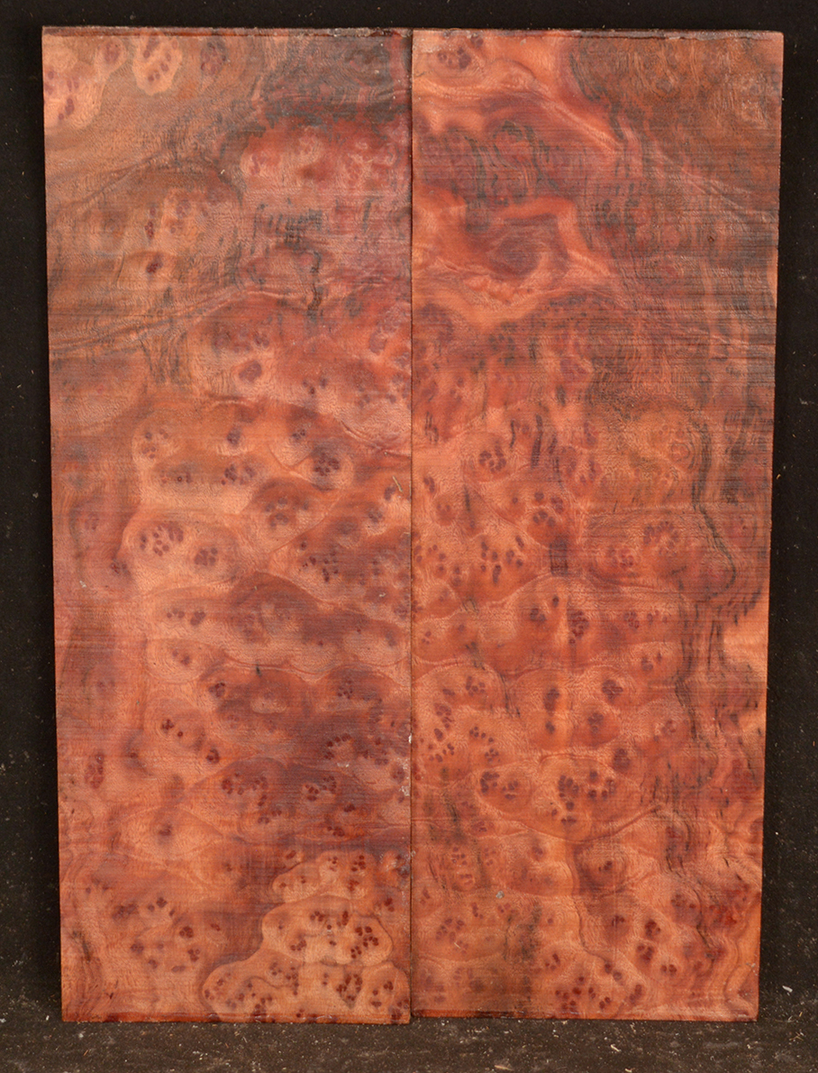 This rare burl is from S.E. Asia and is seldom seen on the world market. It is fine-grained and varies in color from a light reddish-brown to almost scarlet. It is easy to work and has a very pungent, spicy scent. For a burl it is remarkably stable. Green to partially air dried.