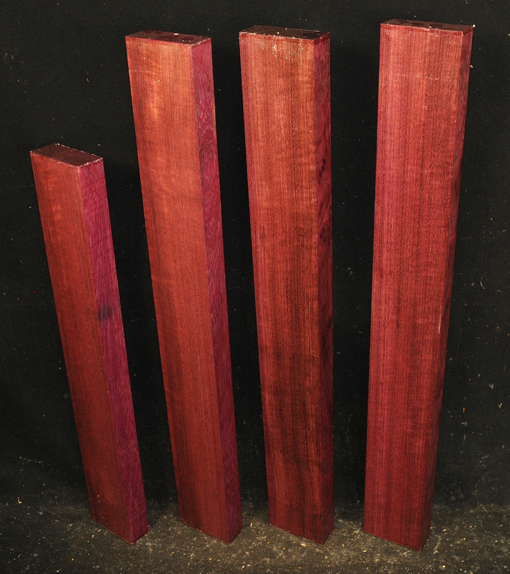 The best colored & figured Purpleheart comes from Bolivia. It is also finer-grained than other Purpleheart species found elsewhere. Air-dried.