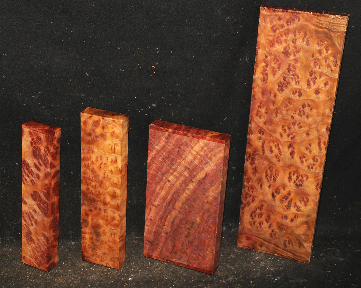 This rare burl is from S.E. Asia and is seldom seen on the world market. It is fine-grained and varies in color from a light reddish-brown to almost scarlet. It is easy to work and has a very pungent, spicy scent. For a burl it is remarkably stable. Green to partially air dried.