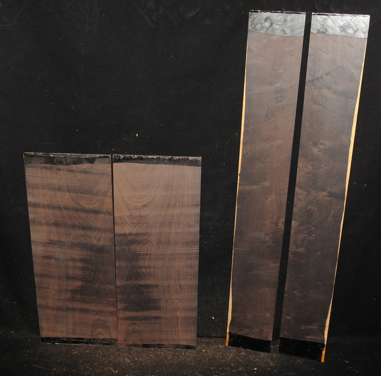 The heartwood is purplish to brownish-black with dark gray streaks giving an overall impression of being black. Lustrous with an attractive inner chatoyance. Very hard, heavy, close-grained, and virtually free from pores. Its stability and lovely tonal qualities make it an excellent instrument wood.