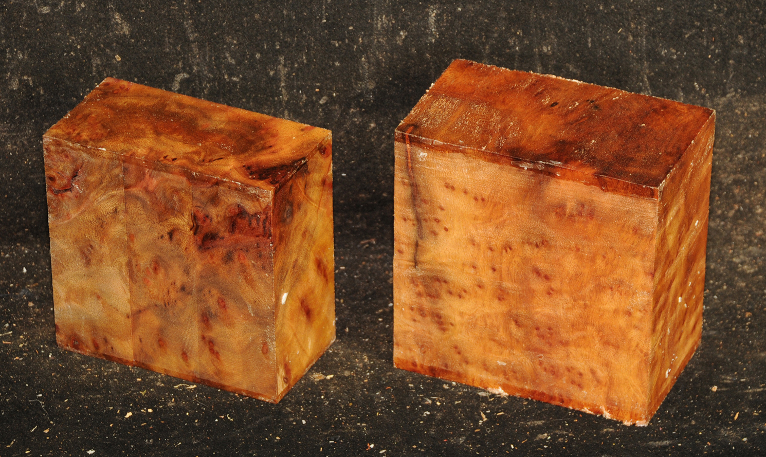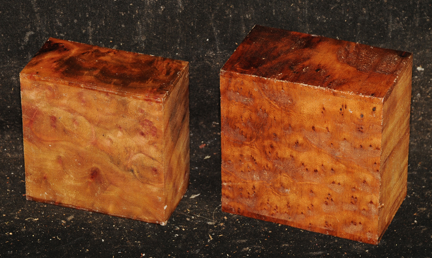 This rare burl is from S.E. Asia and is seldom seen on the world market. It is fine-grained and varies in color from a light reddish-brown to almost scarlet. It is easy to work and has a very pungent, spicy scent. For a burl it is remarkably stable. Green to partially air dried.
