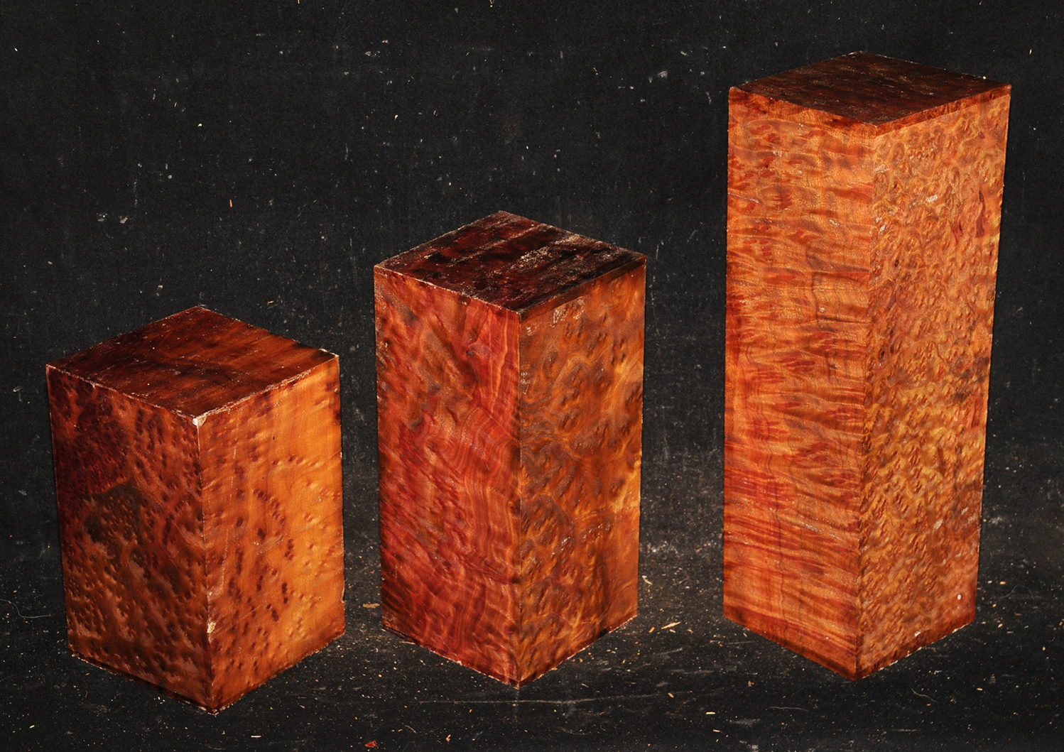 This rare burl is from S.E. Asia and is seldom seen on the world market. It is fine-grained and varies in color from a light reddish-brown to almost scarlet. It is easy to work and has a very pungent, spicy scent. For a burl it is remarkably stable. Green to partially air dried.