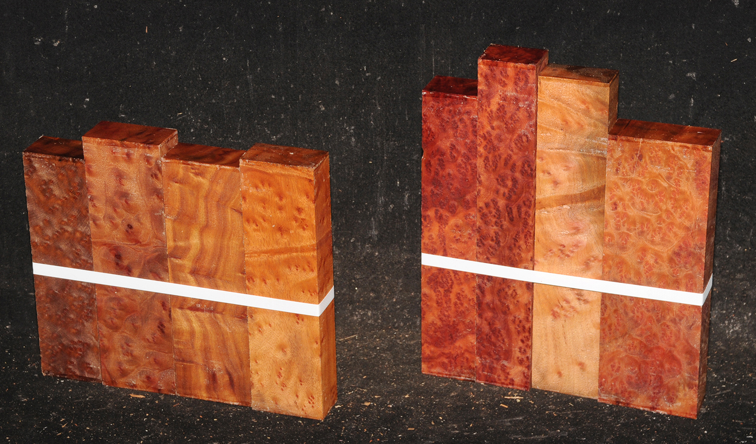This rare burl is from S.E. Asia and is seldom seen on the world market. It is fine-grained and varies in color from a light reddish-brown to almost scarlet. It is easy to work and has a very pungent, spicy scent. For a burl it is remarkably stable. Green to partially air dried.