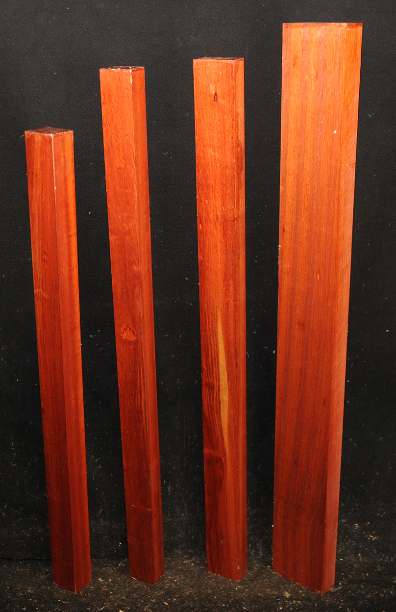 Also called Satine, Cacique, and Cardinalwood. The heartwood is a rich strawberry red, in sharp contrast to the light colored sapwood. Takes a high, lustrous finish.