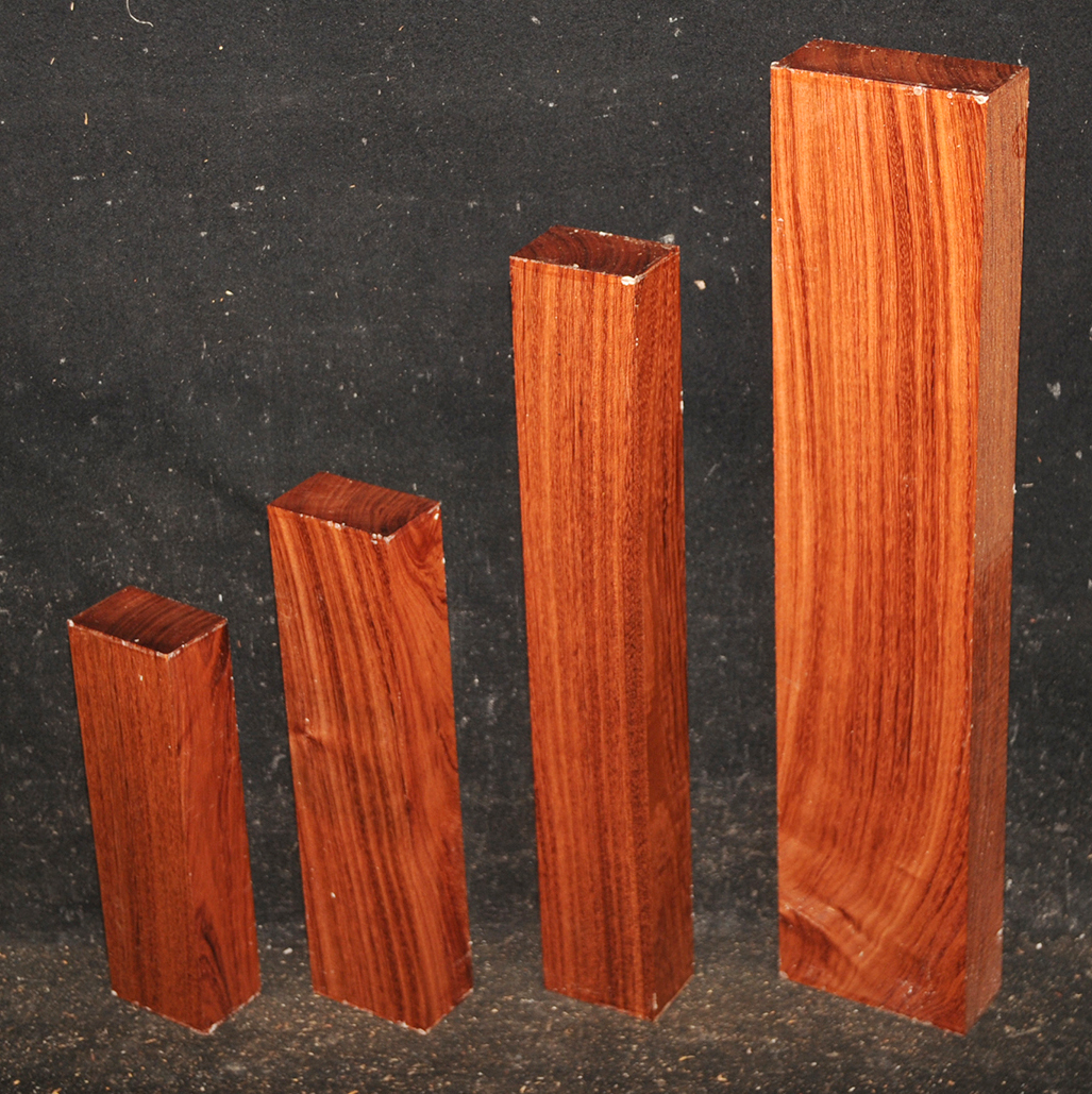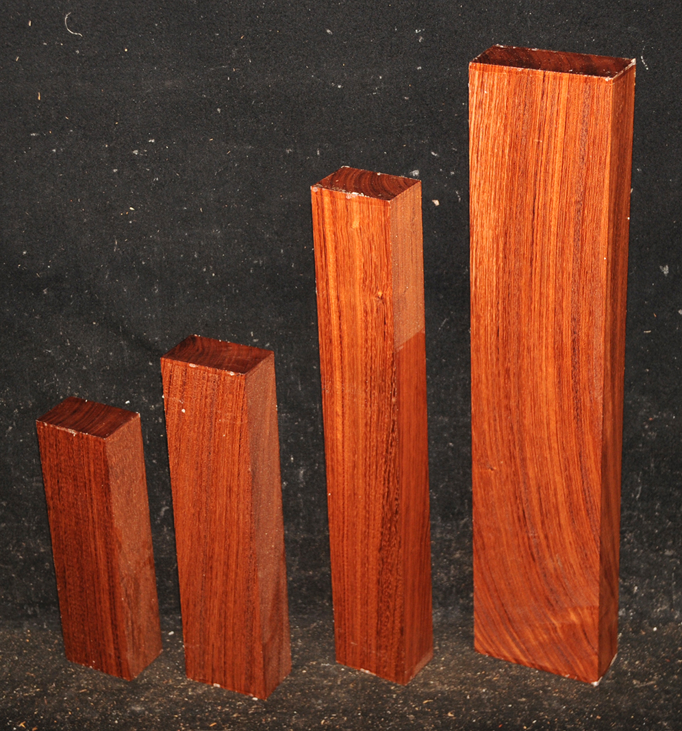Called by some woodworkers African Rosewood, Bubinga is a deep, lustrous, brownish-red color with a fine, darker striping. The figure makes the wood doubly beautiful. It is very hard and heavy and takes a glassy, smooth finish.