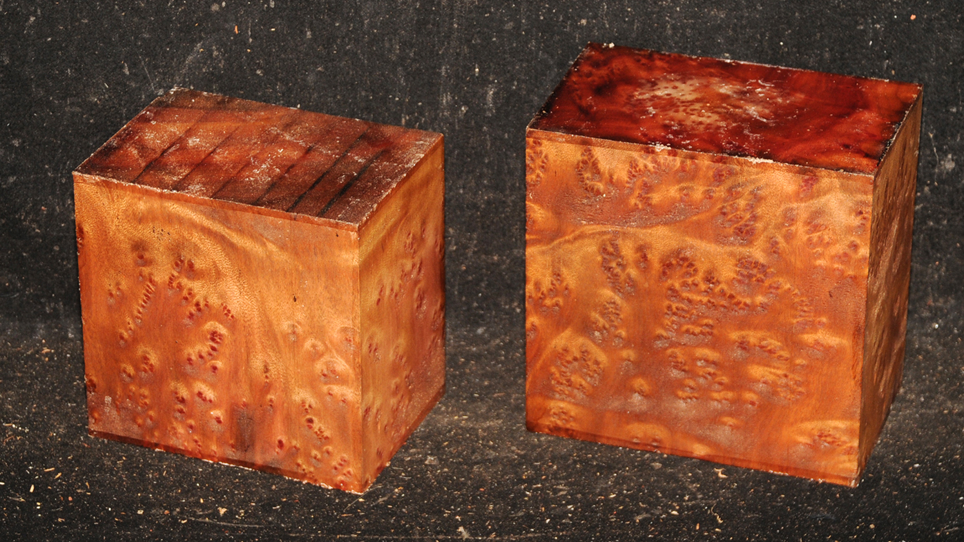 This rare burl is from S.E. Asia and is seldom seen on the world market. It is fine-grained and varies in color from a light reddish-brown to almost scarlet. It is easy to work and has a very pungent, spicy scent. For a burl it is remarkably stable. Green to partially air dried.