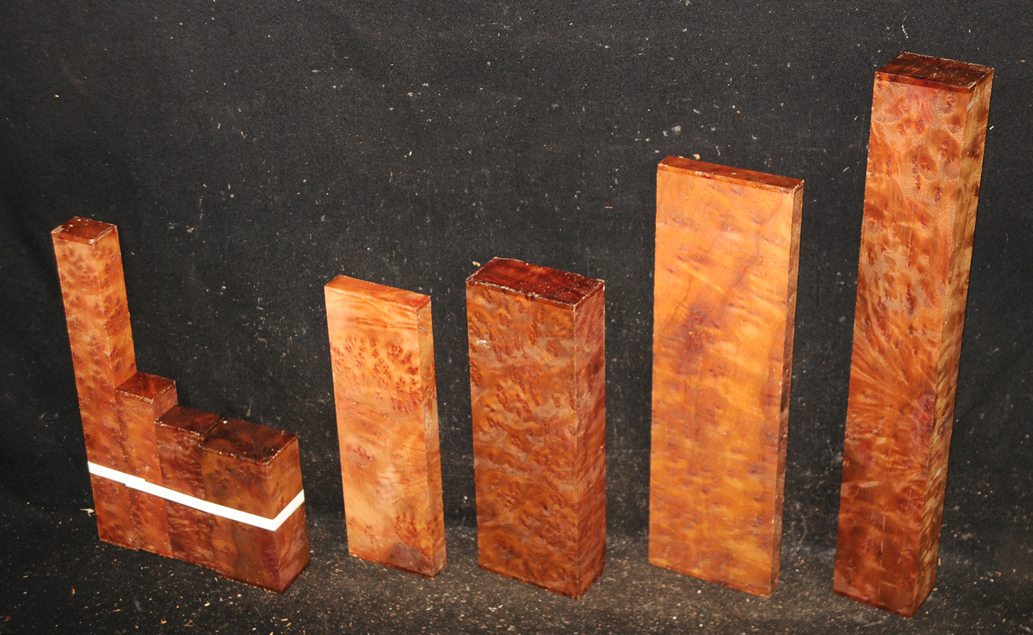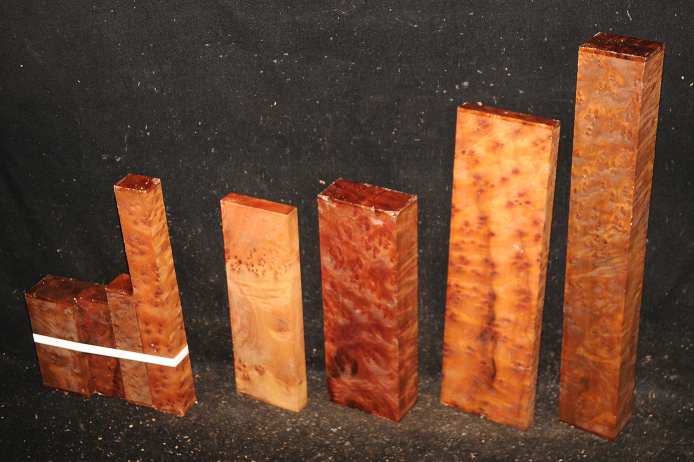 This rare burl is from S.E. Asia and is seldom seen on the world market. It is fine-grained and varies in color from a light reddish-brown to almost scarlet. It is easy to work and has a very pungent, spicy scent. For a burl it is remarkably stable. Green to partially air dried.