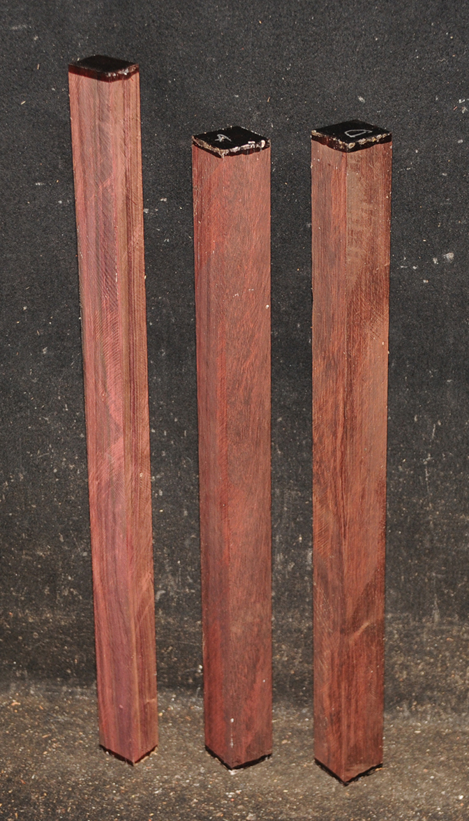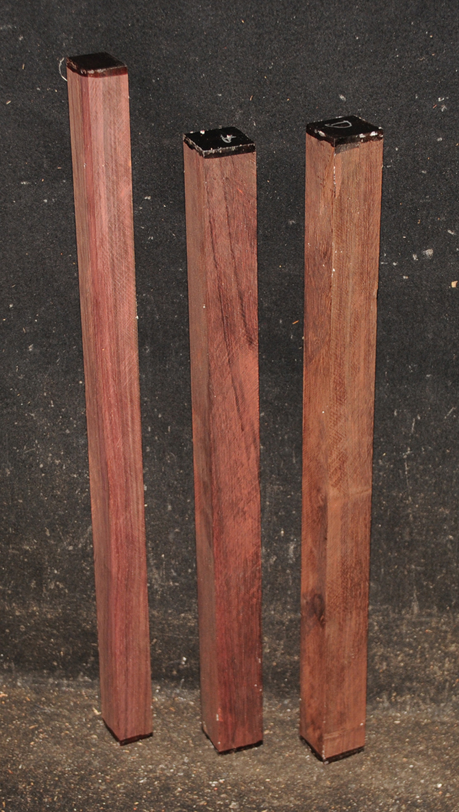 Bois de Rose is a true rosewood from Madagascar and is little known on the world timber market. It is a deep burgundy color, sometimes with darker striping and darkens on exposure. It is hard and heavy and takes a high, glassy- smooth polish. This wood has a tap tone more like old Brazilian Rosewood than any other species we have cut. Bois de Rose is one of the rarest in the rosewood family. We have a very limited stock of this beautiful wood and when it is gone we will not be able to replace it. Air dried.