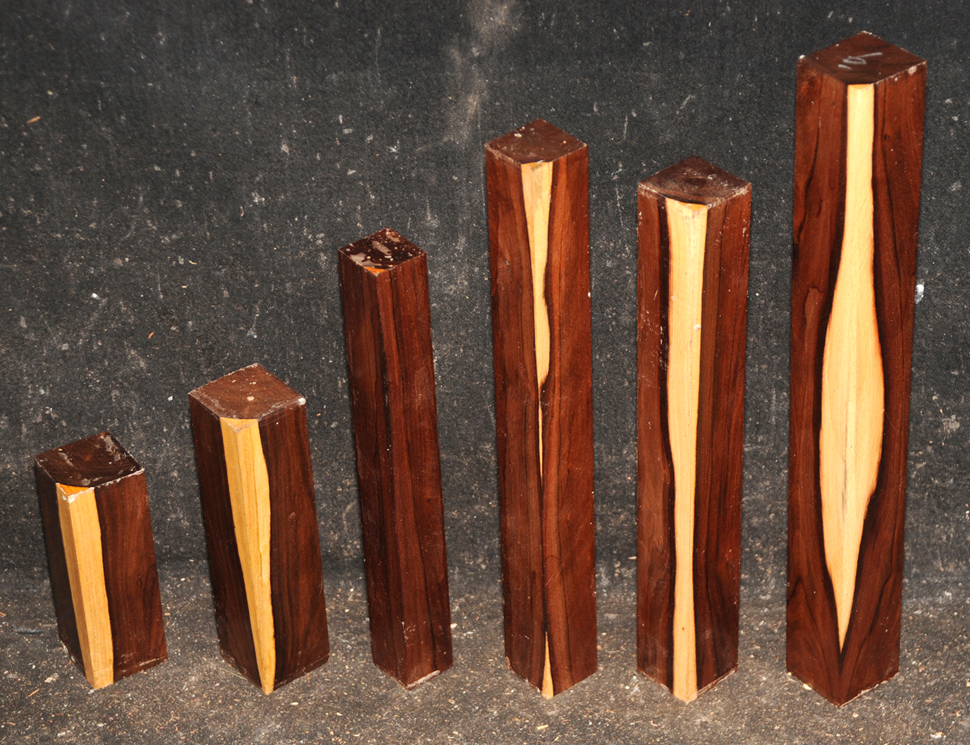 This extremely rare species is found in Cuba, Jamaica, and the Dominican Republic. Also called Green, Brown, or West Indian Ebony. The heartwood is brownish-yellow to dark brown often with a greenish tinge. It is usually beautifully veined with darker streaks. The wood is hard and heavy weighing 68 to 80 lbs/cubic foot. This high density contributes to its wonderful acoustic properties-it fairly rings when struck. It is well known for its use in woodwinds such as flutes, piccolos, and bagpipes because of its fine and uniform grain, its beautiful coloring and its resonance.