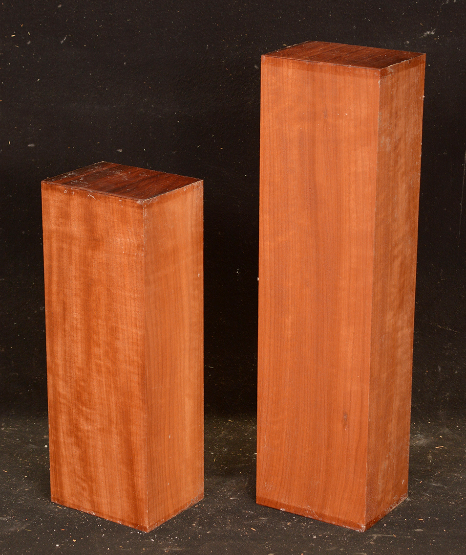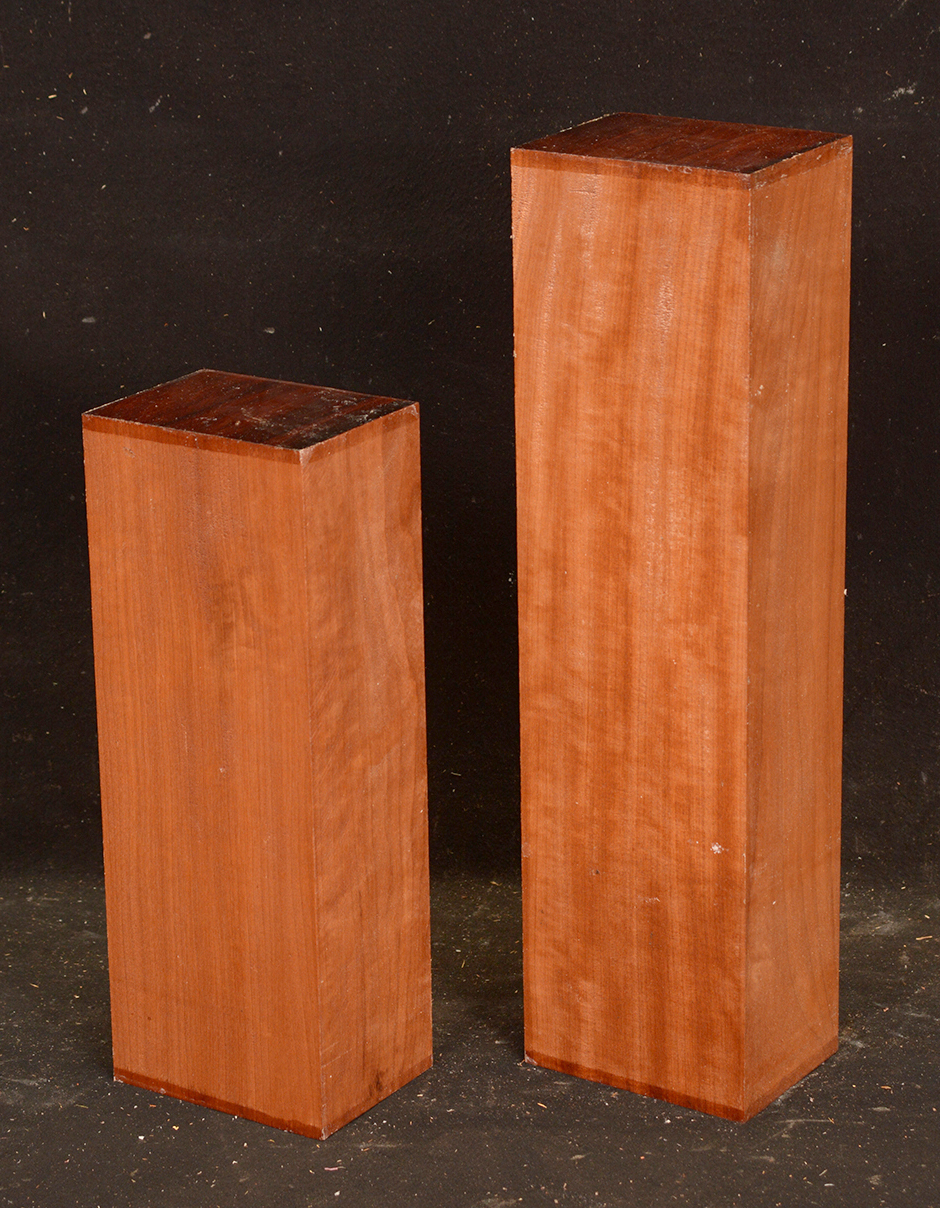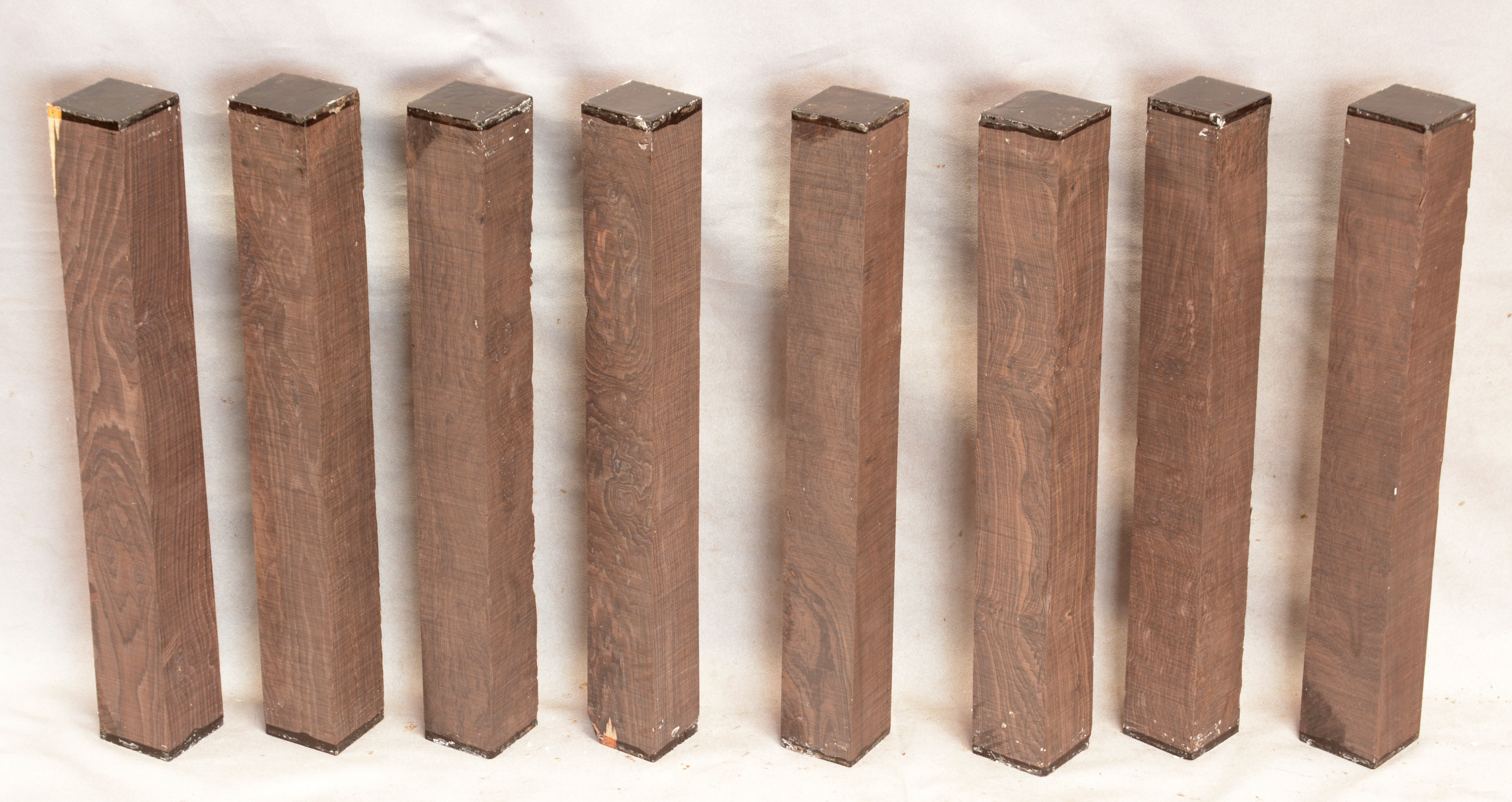 The heartwood is purplish to brownish-black with dark gray streaks giving an overall impression of being black. Lustrous with an attractive inner chatoyance. Very hard, heavy, close-grained, and virtually free from pores. Slightly oily to the touch. The sapwood is straw colored to a bright yellow and can be as wide as 2". African Blackwood can weigh as much as 85 lbs per cubic foot. It is used for marquetry, inlays, knife handles, game calls, pistol grips, pool cue butts, chess pieces, jewelry, and other precious arts and crafts. But its main use is in turning, and it claims the title of the finest of turnery woods, well known as the standard by which other turnery woods are judged. Long a favorite of ornamental turners, the nature of the wood allows very fine detail with sharp cutters, leaving a beautiful, burnished surface. Its stability, oily nature, resistance to moisture, and lovely finishing qualities make it superior to other timbers. These are best quality squares. Rare.