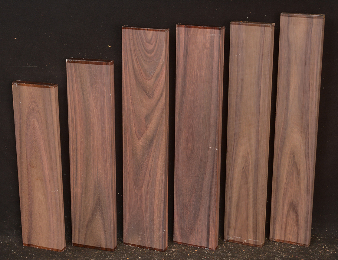 This Rosewood species has a reddish-brown to dark brown colored heartwood contrasting the almost white sapwood. The dust has a sweet odor. It is an excellent furniture/case works/jewelry box wood and even though it has a medium texture it does take a nice polish. We also offer it as a musical instrument wood (see guitar fingerboards and backs & sides elsewhere on the site). It has a very "crisp" tap tone with good sustain.