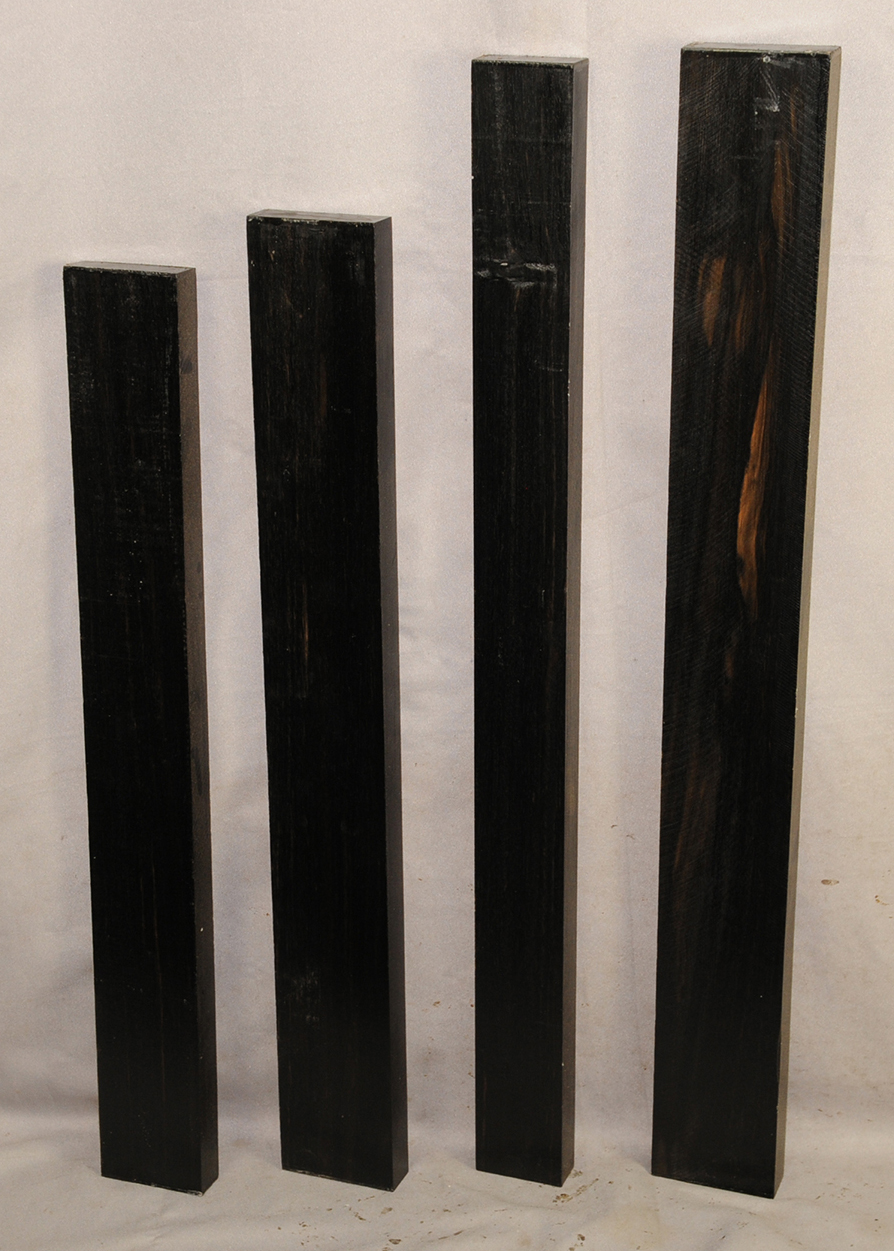 C & D are Figured Macassar Ebony, 5 pieces each.