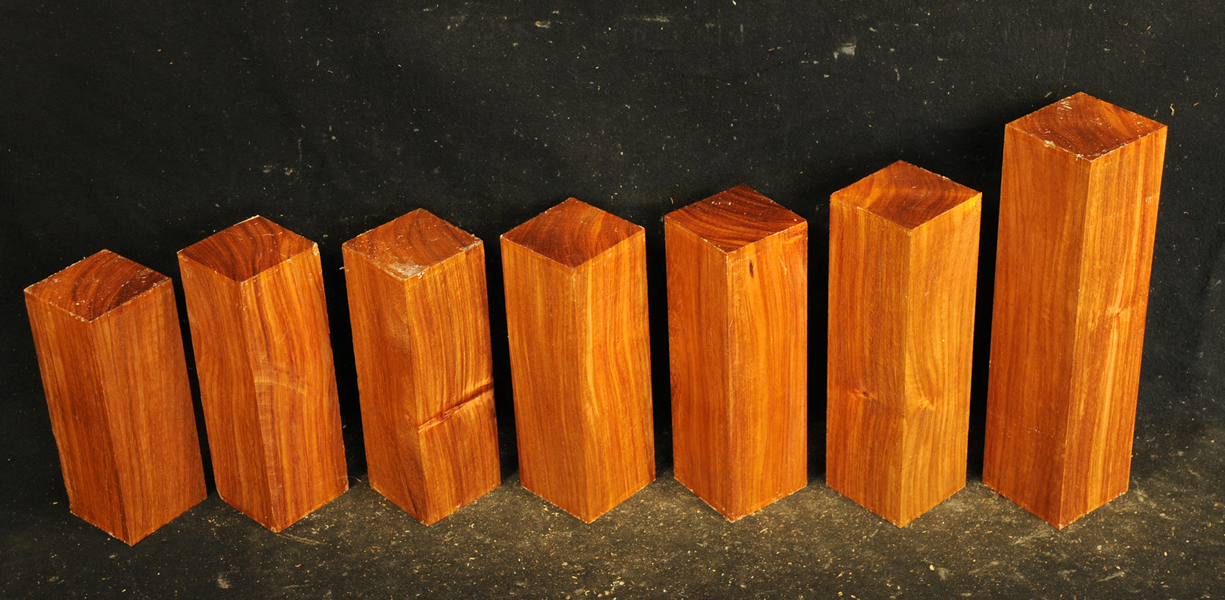 Also called New Guinea Rosewood. It is usually a beautiful, highly lustrous golden yellow color sometimes with reddish streaks, though these pieces have more golden brown tones. A nice turning wood it is also used in furniture, jewelry boxes, handles, etc. It is easy to work and glue and takes a nice polish.
