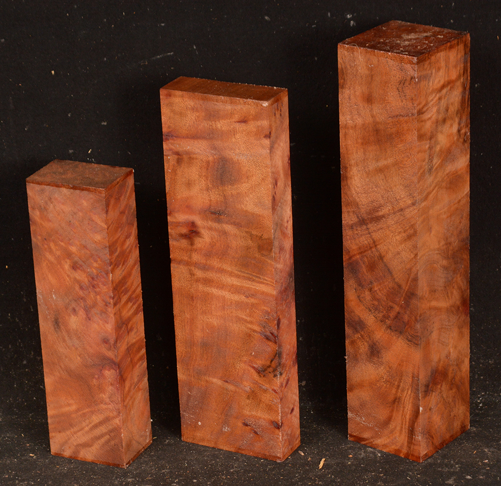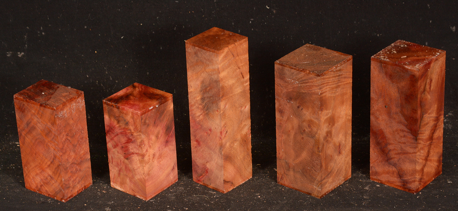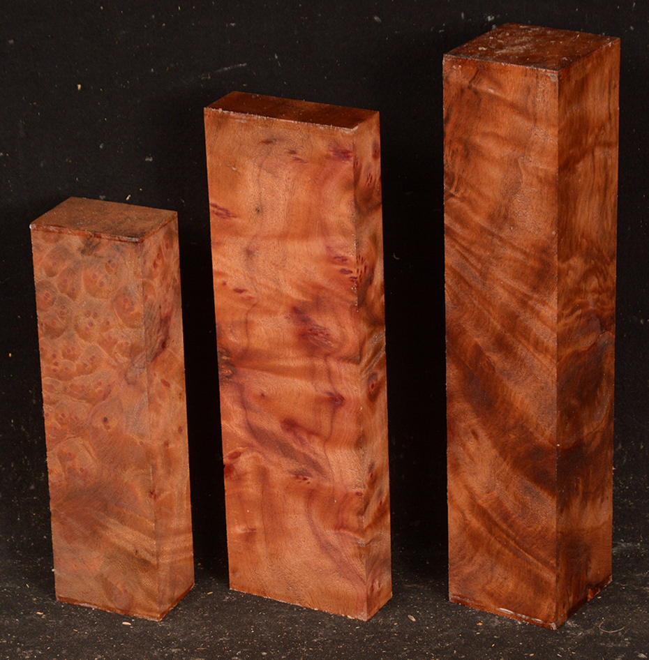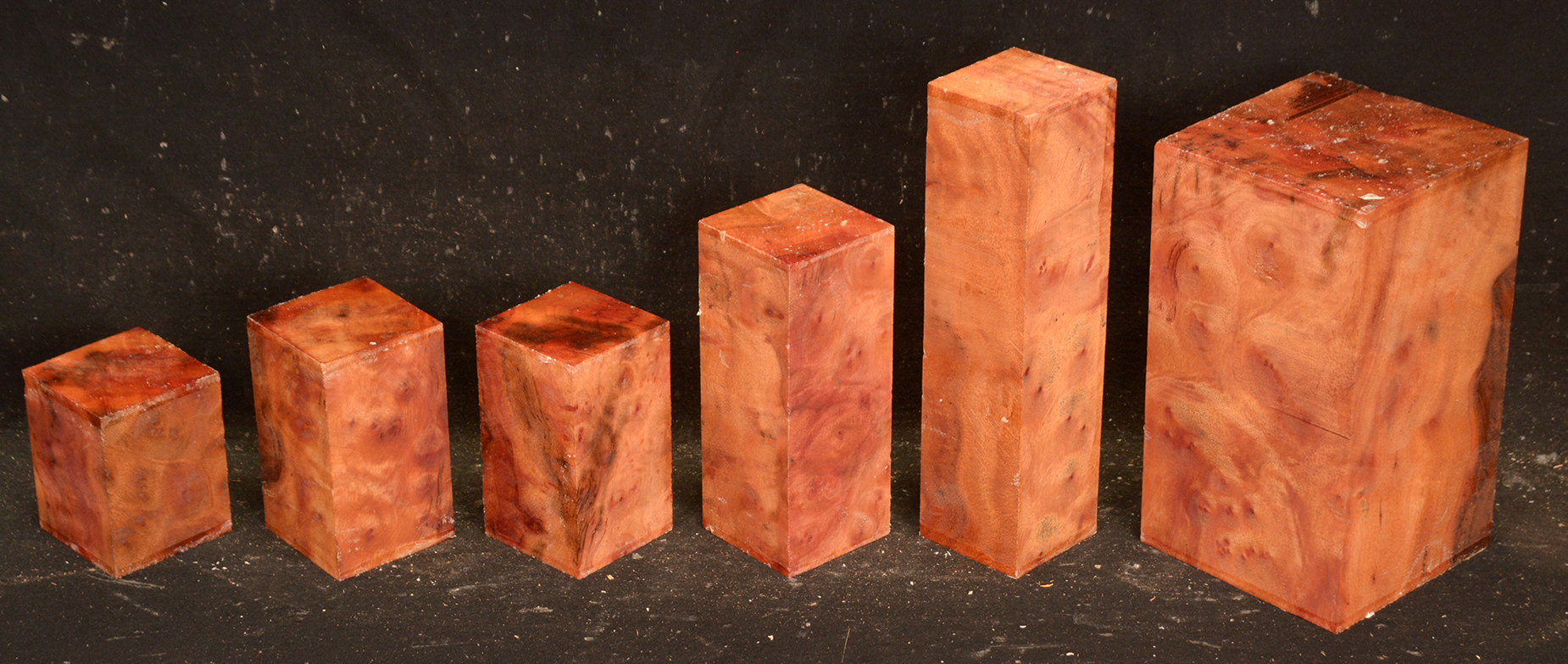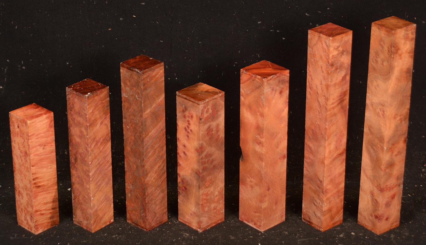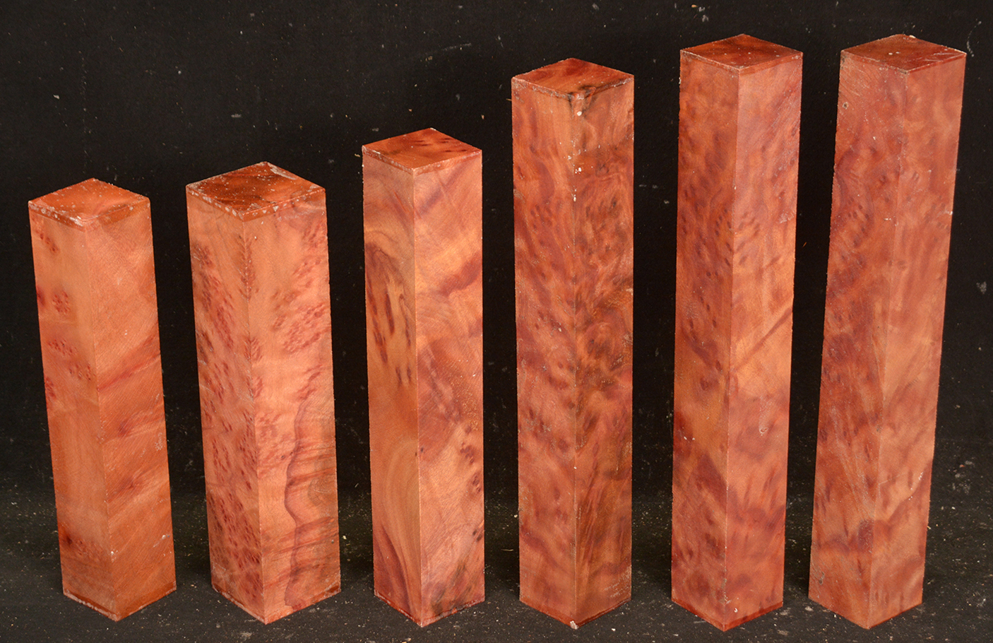 This rare burl is from S.E. Asia and is seldom seen on the world market. It is fine-grained and varies in color from a light reddish-brown to almost scarlet. It is easy to work and has a very pungent, spicy scent. For a burl it is remarkably stable. Green to partially air dried.